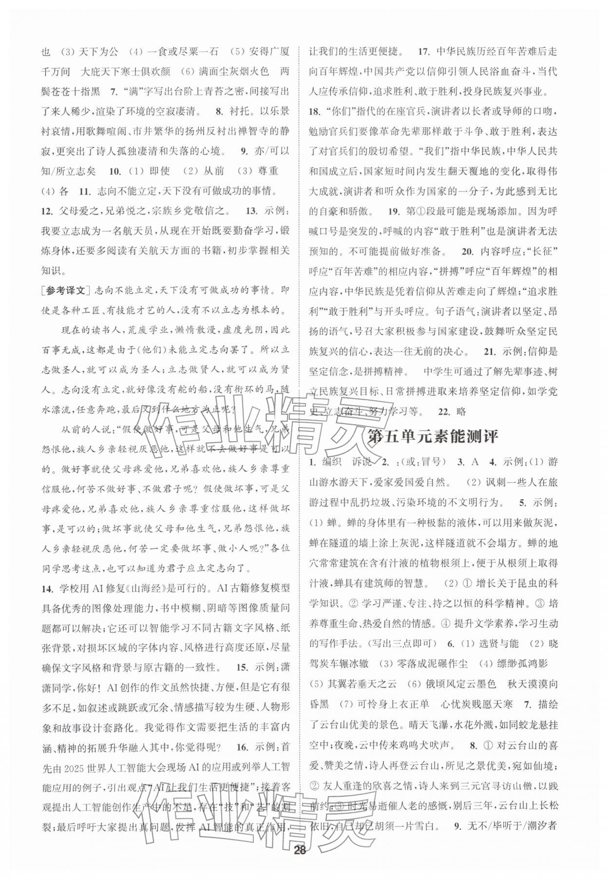2026年通城学典课时作业本八年级语文下册人教版南通专版第28页