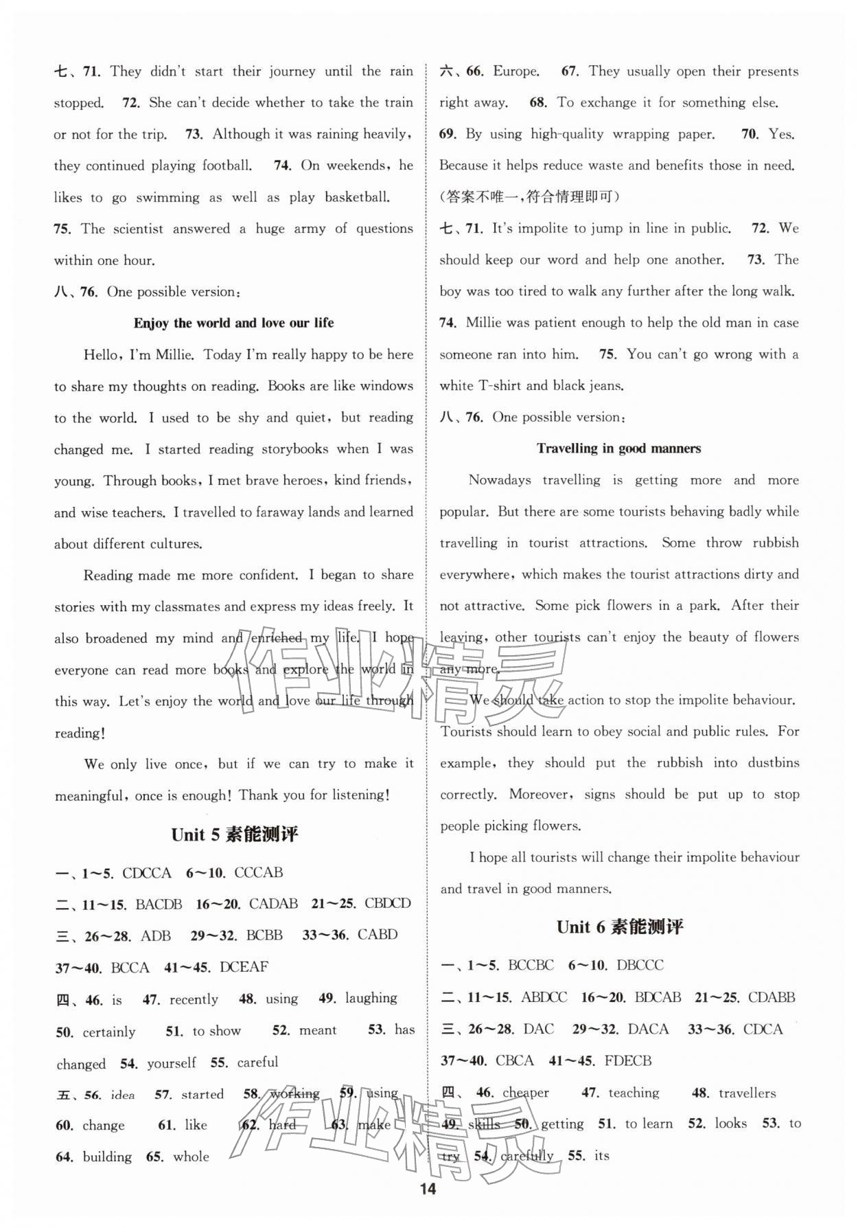 2026年通城学典课时作业本八年级英语下册译林版南通专版第14页