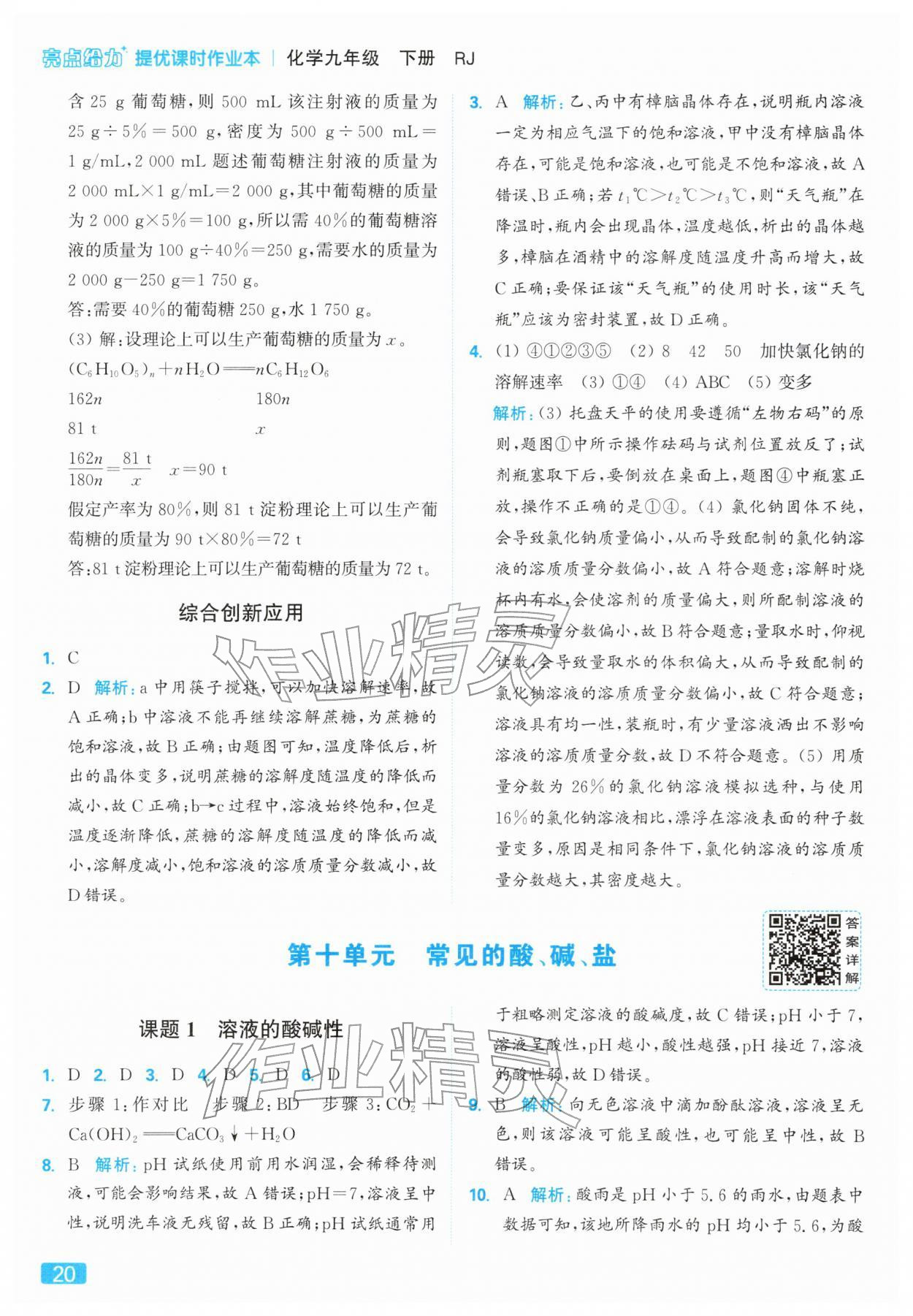 2026年亮点给力提优课时作业本九年级化学下册人教版第20页