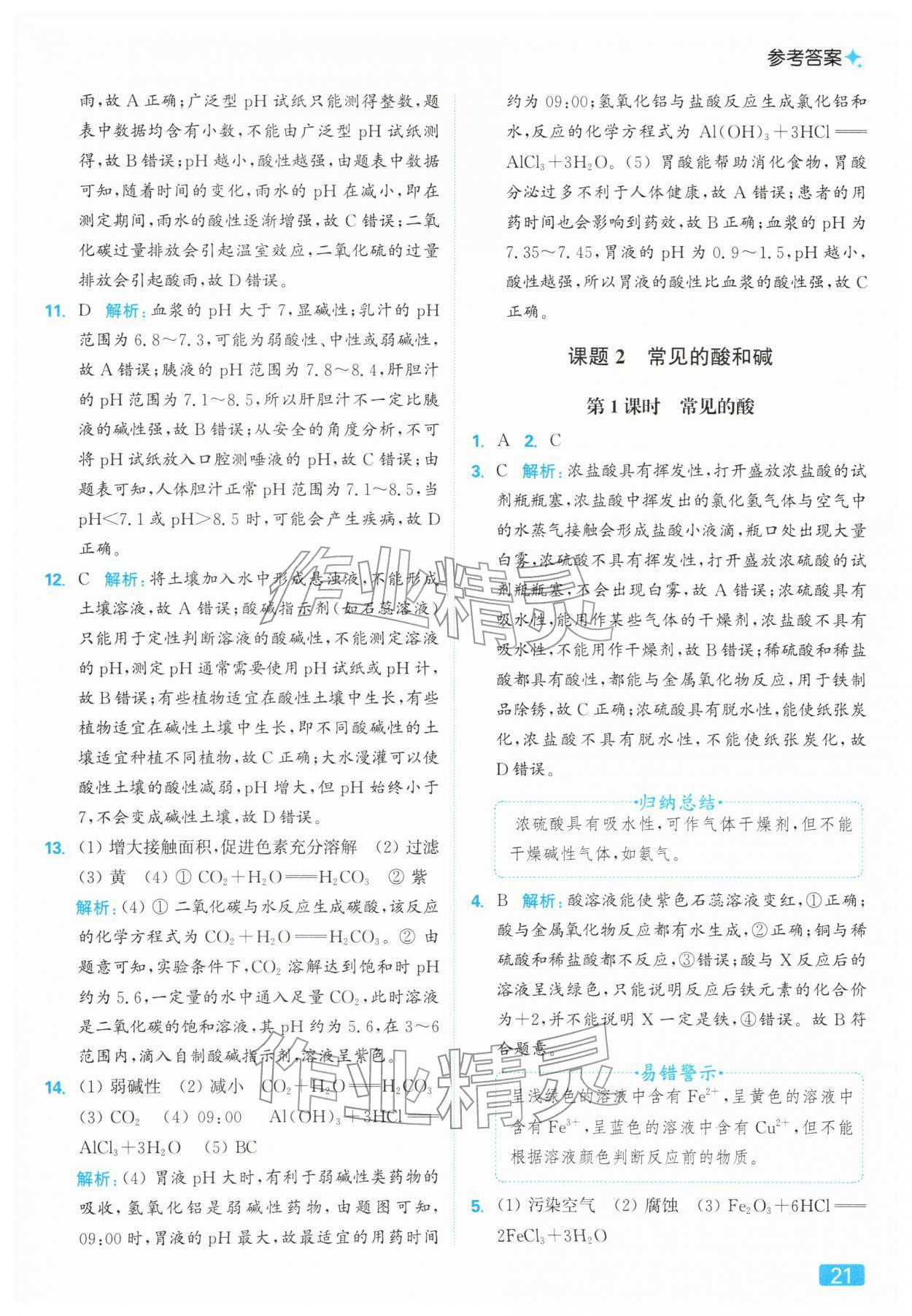 2026年亮点给力提优课时作业本九年级化学下册人教版第21页
