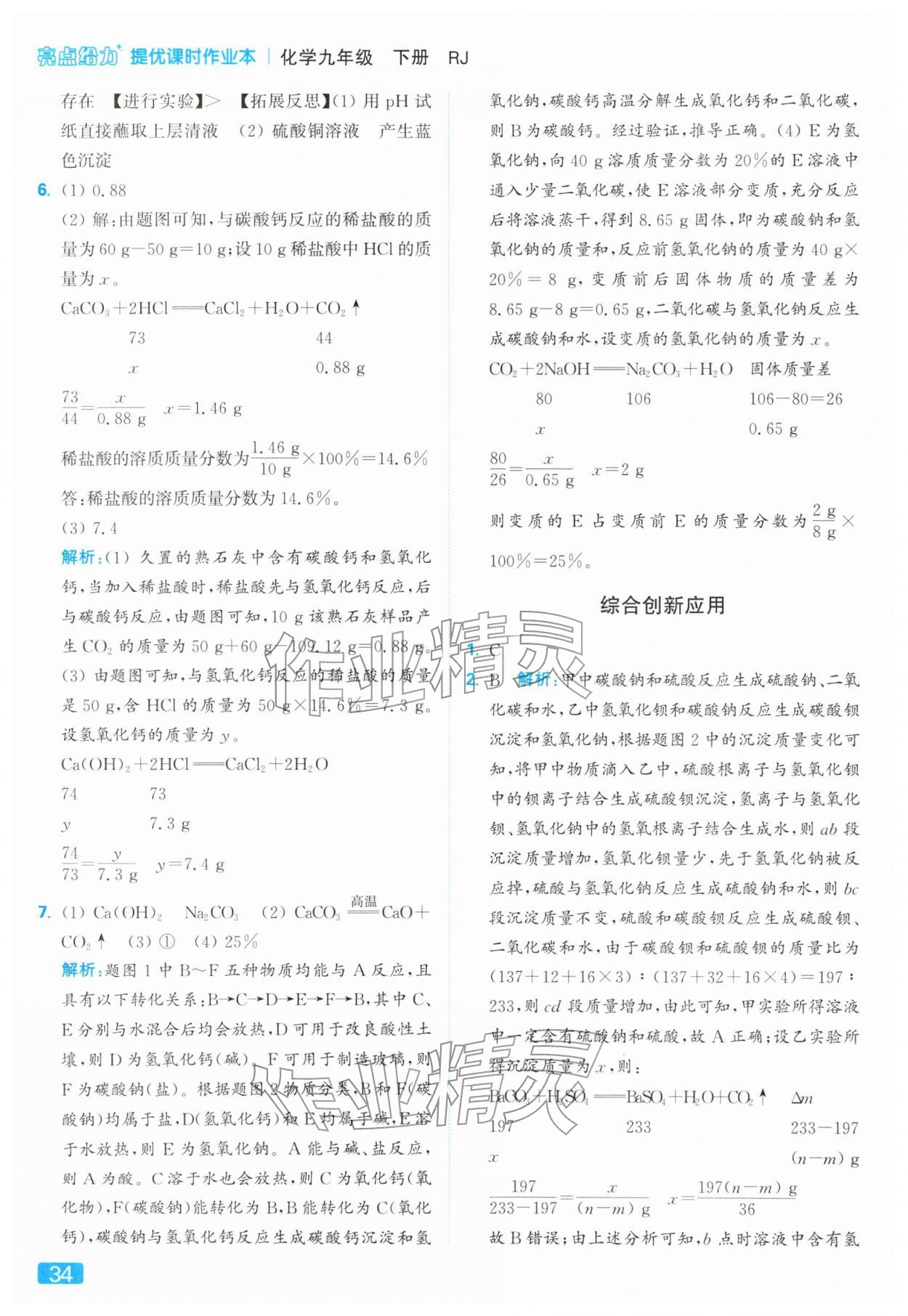 2026年亮点给力提优课时作业本九年级化学下册人教版第34页
