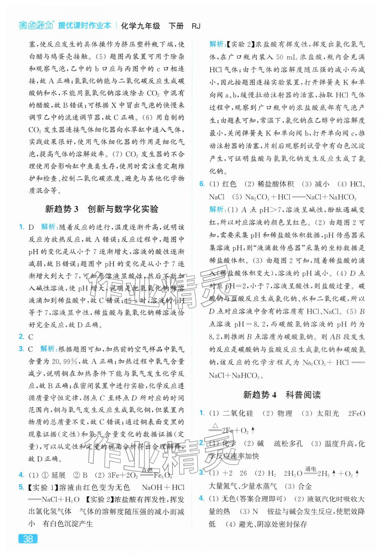 2026年亮点给力提优课时作业本九年级化学下册人教版第38页