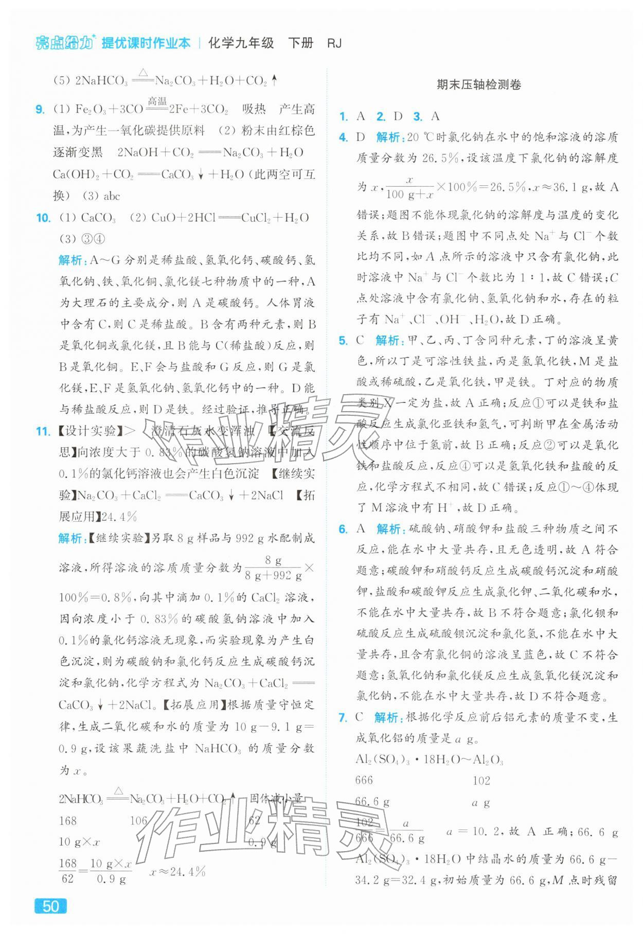 2026年亮点给力提优课时作业本九年级化学下册人教版第50页