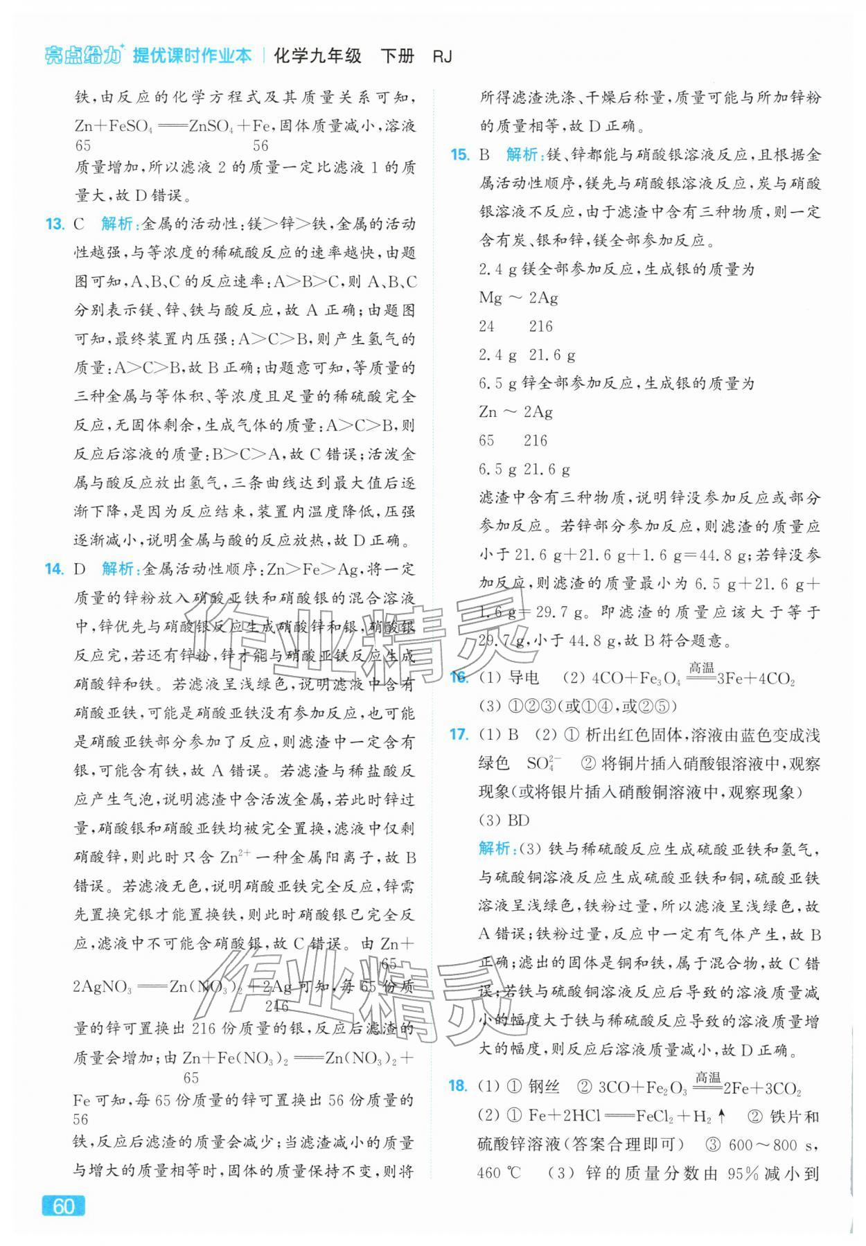 2026年亮点给力提优课时作业本九年级化学下册人教版第60页