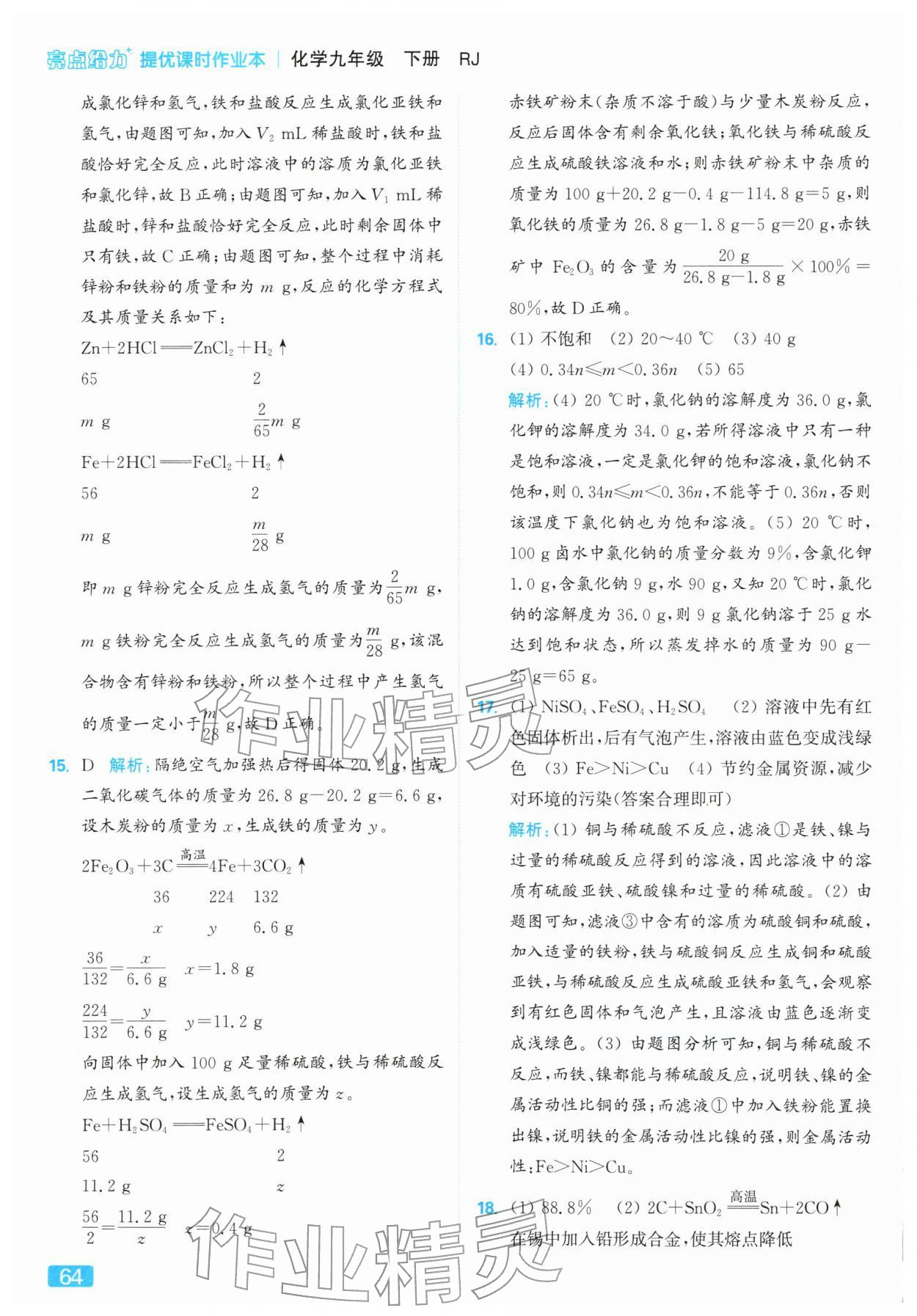 2026年亮点给力提优课时作业本九年级化学下册人教版第64页