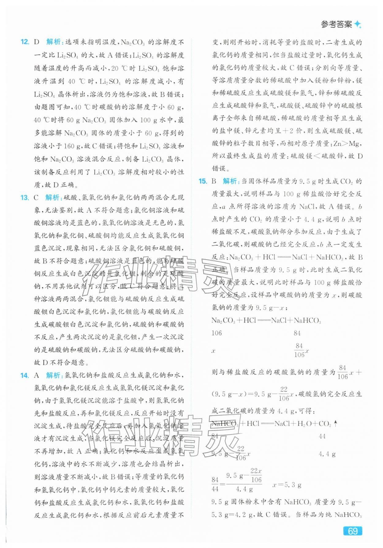 2026年亮点给力提优课时作业本九年级化学下册人教版第69页