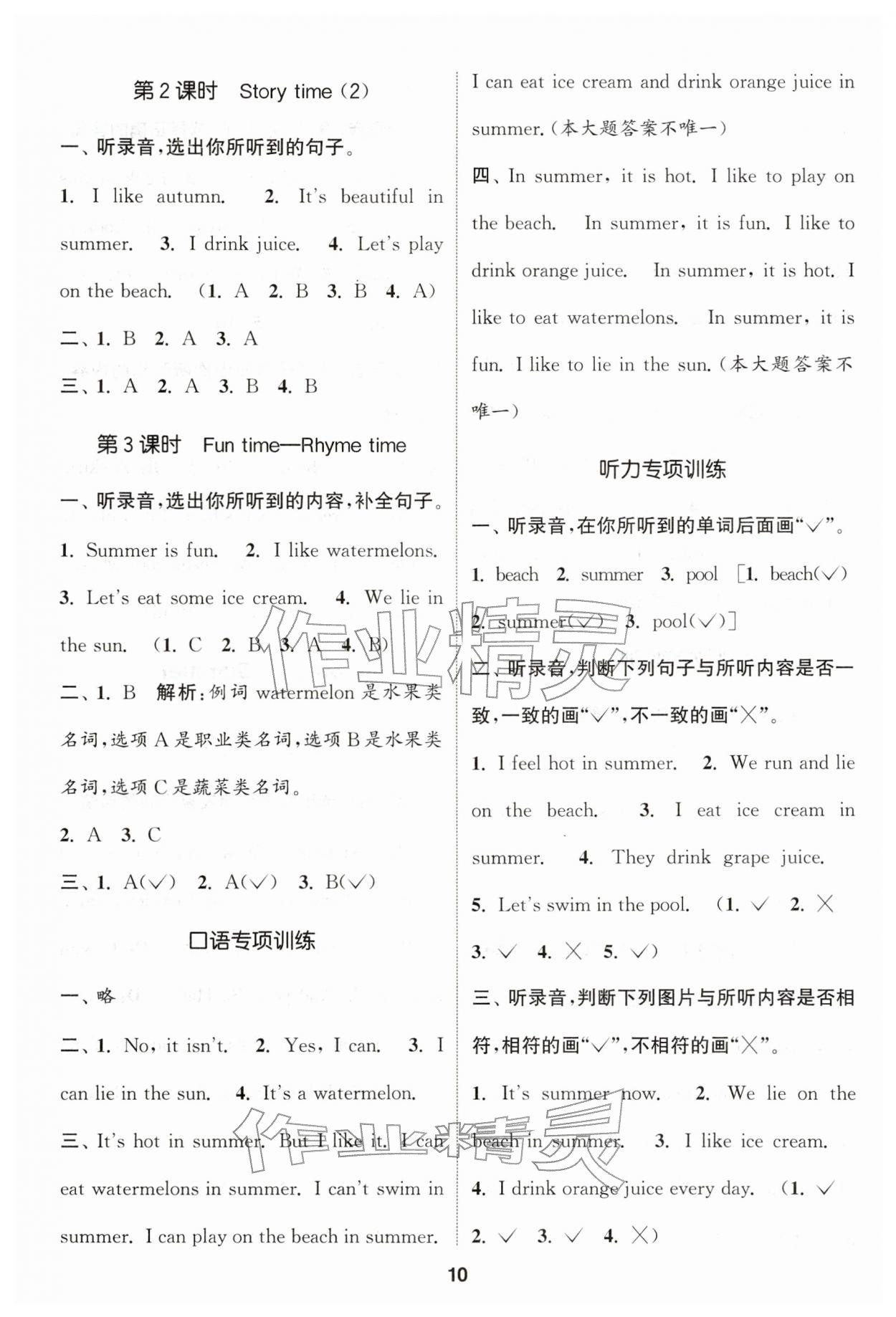 2026年通城学典课时作业本二年级英语下册译林版第10页