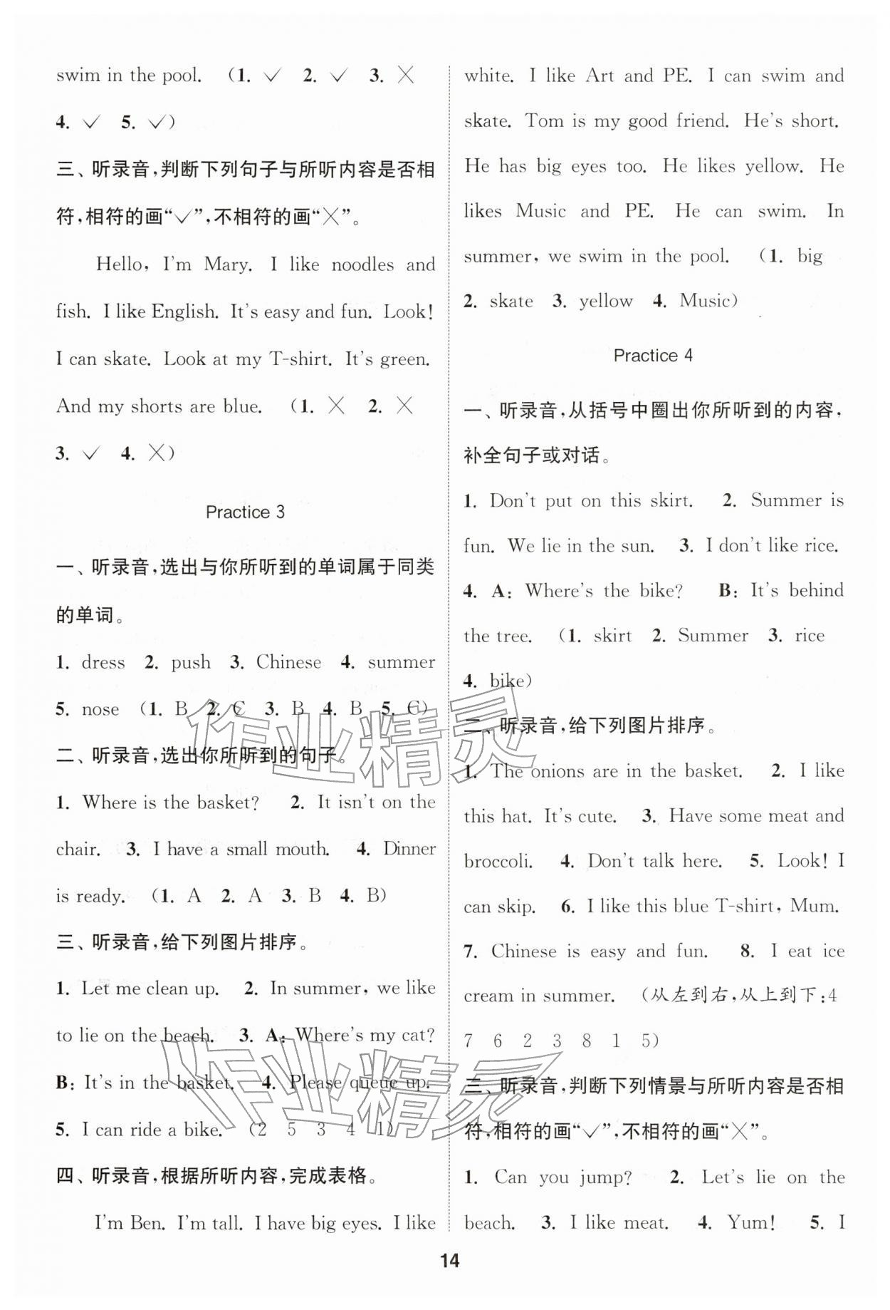 2026年通城学典课时作业本二年级英语下册译林版第14页