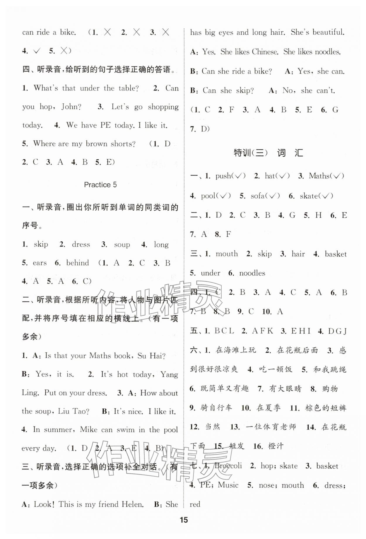 2026年通城学典课时作业本二年级英语下册译林版第15页
