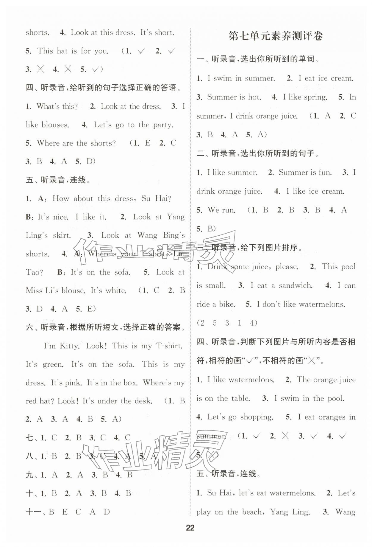 2026年通城学典课时作业本二年级英语下册译林版第22页