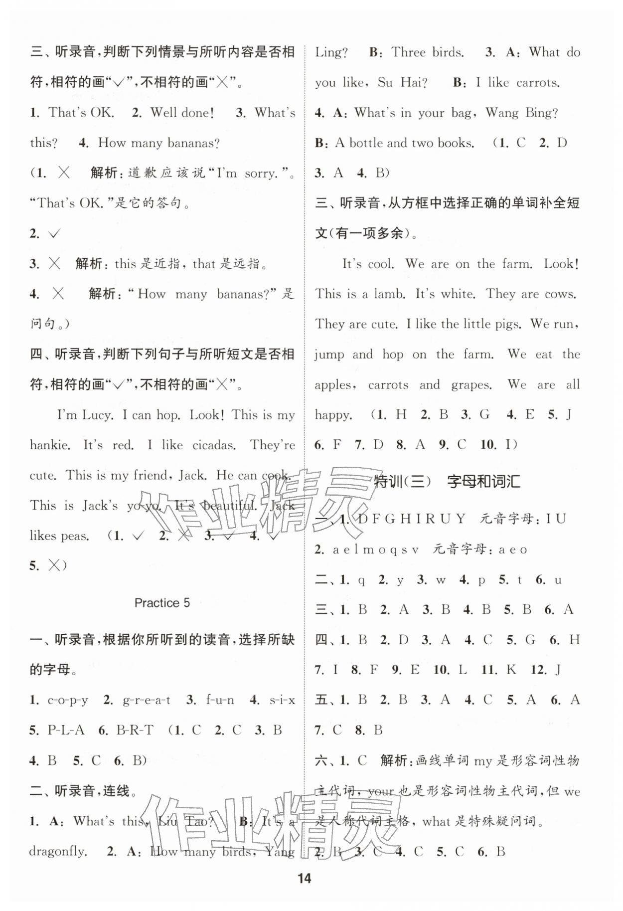 2026年通城学典课时作业本一年级英语下册译林版第14页