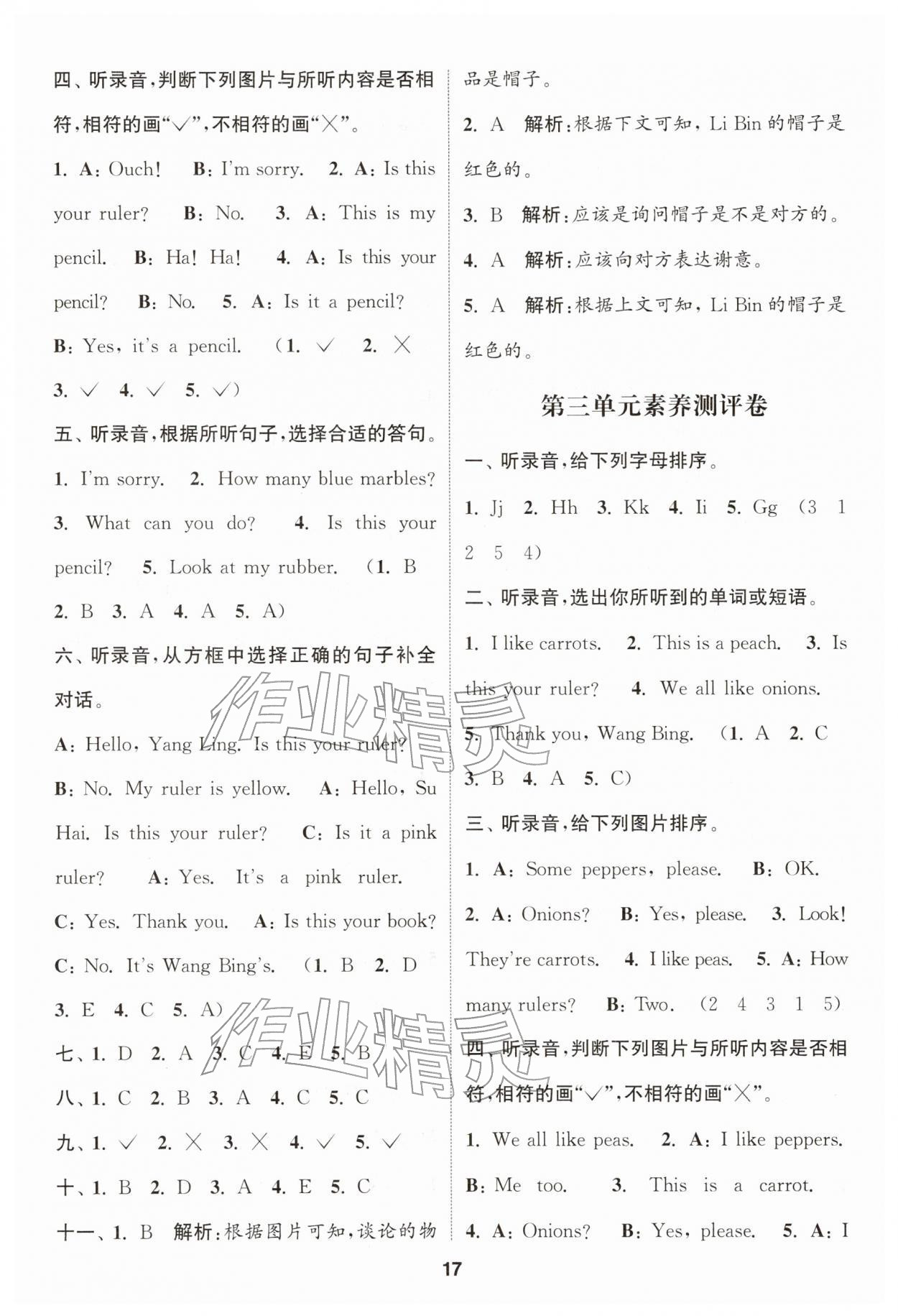 2026年通城学典课时作业本一年级英语下册译林版第17页