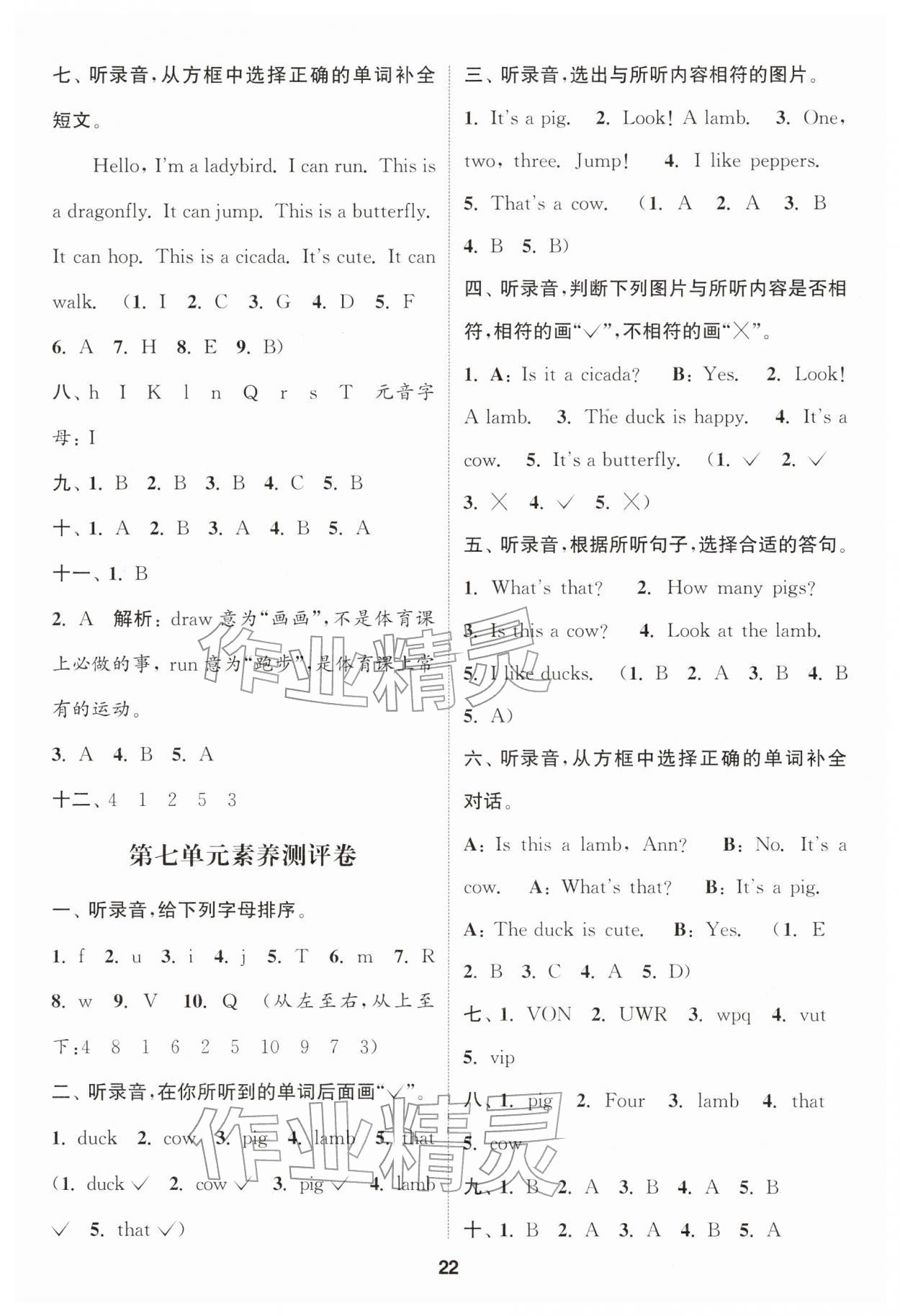 2026年通城学典课时作业本一年级英语下册译林版第22页