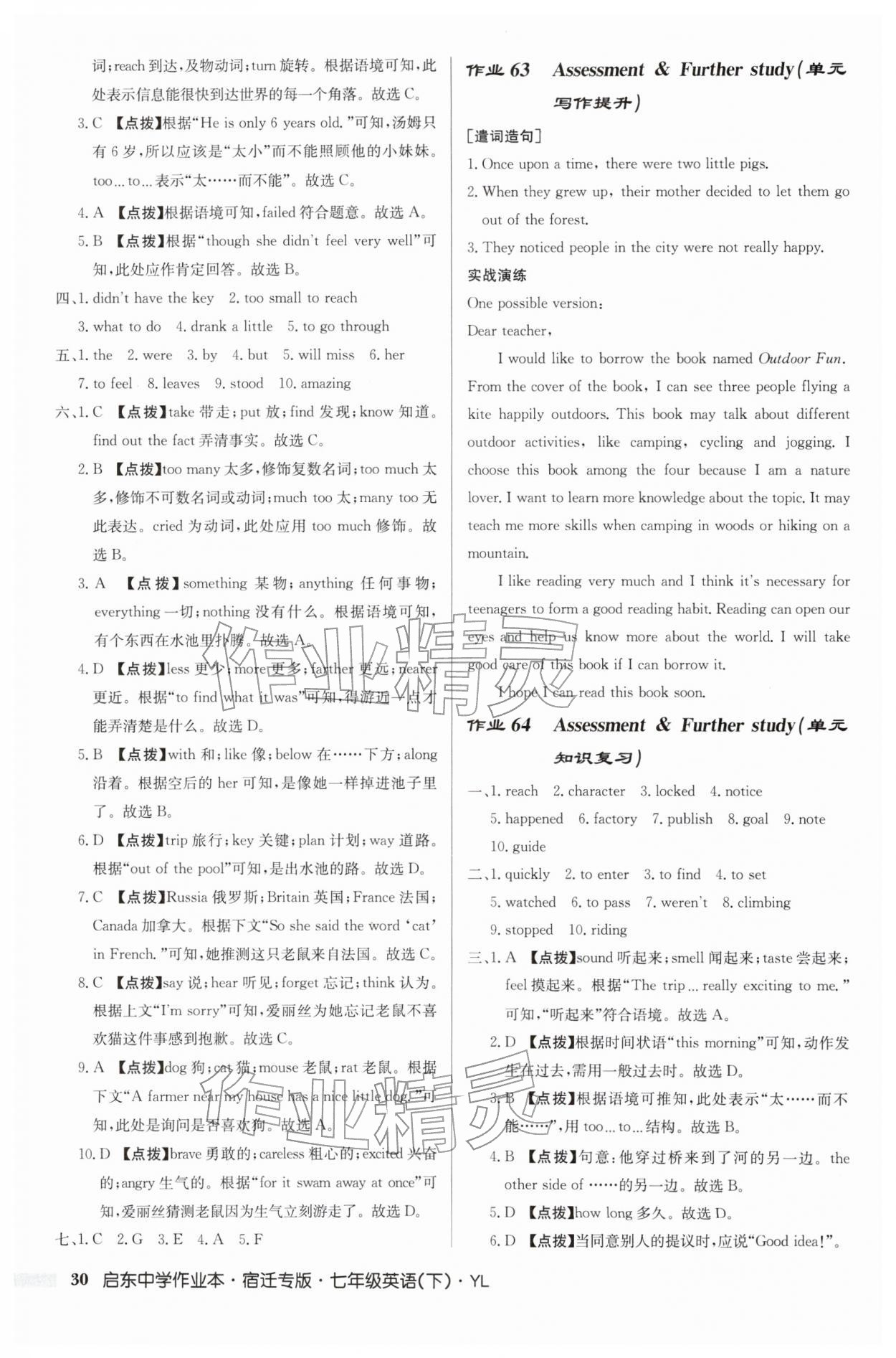 2026年启东中学作业本七年级英语下册译林版宿迁专版第30页