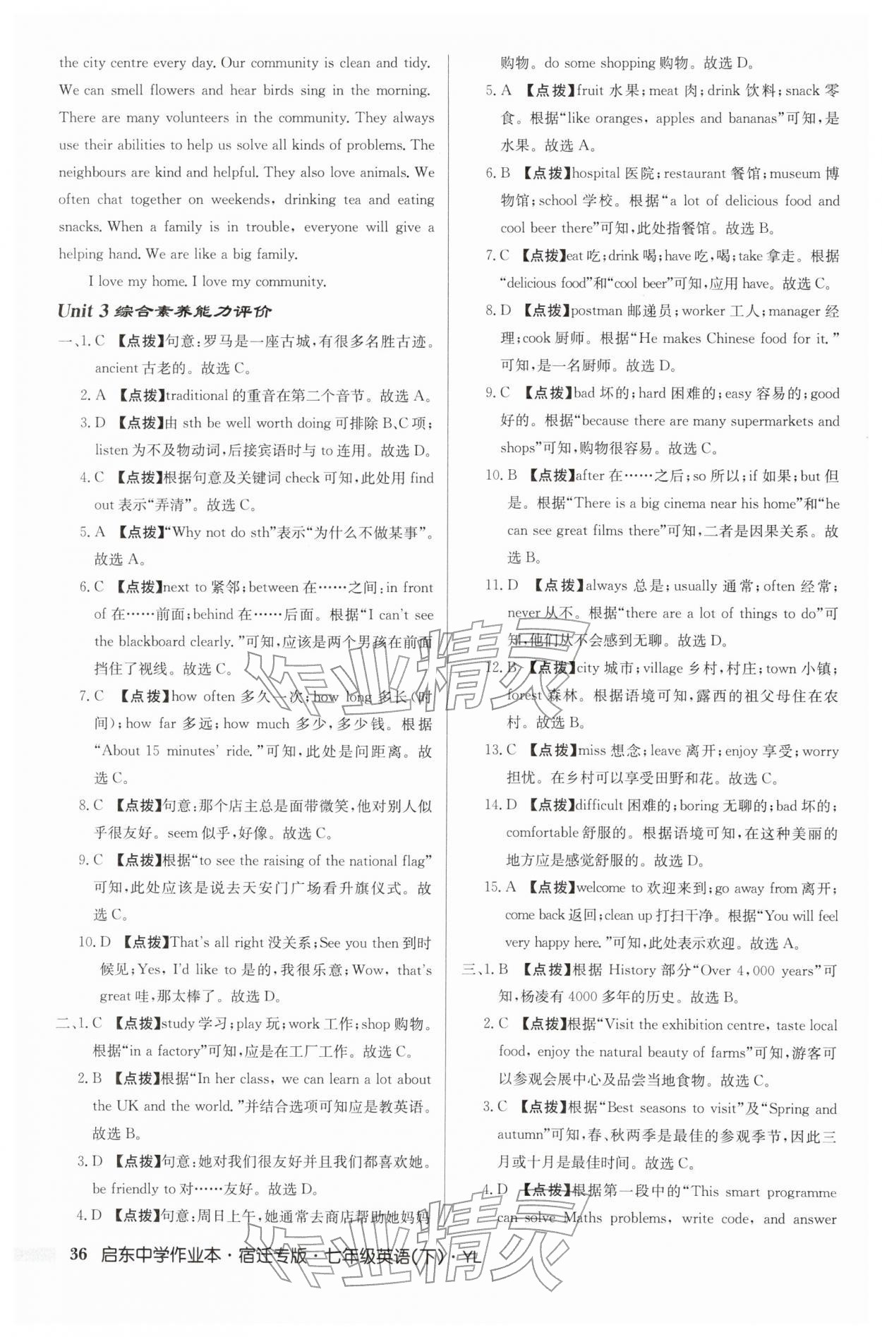 2026年启东中学作业本七年级英语下册译林版宿迁专版第36页
