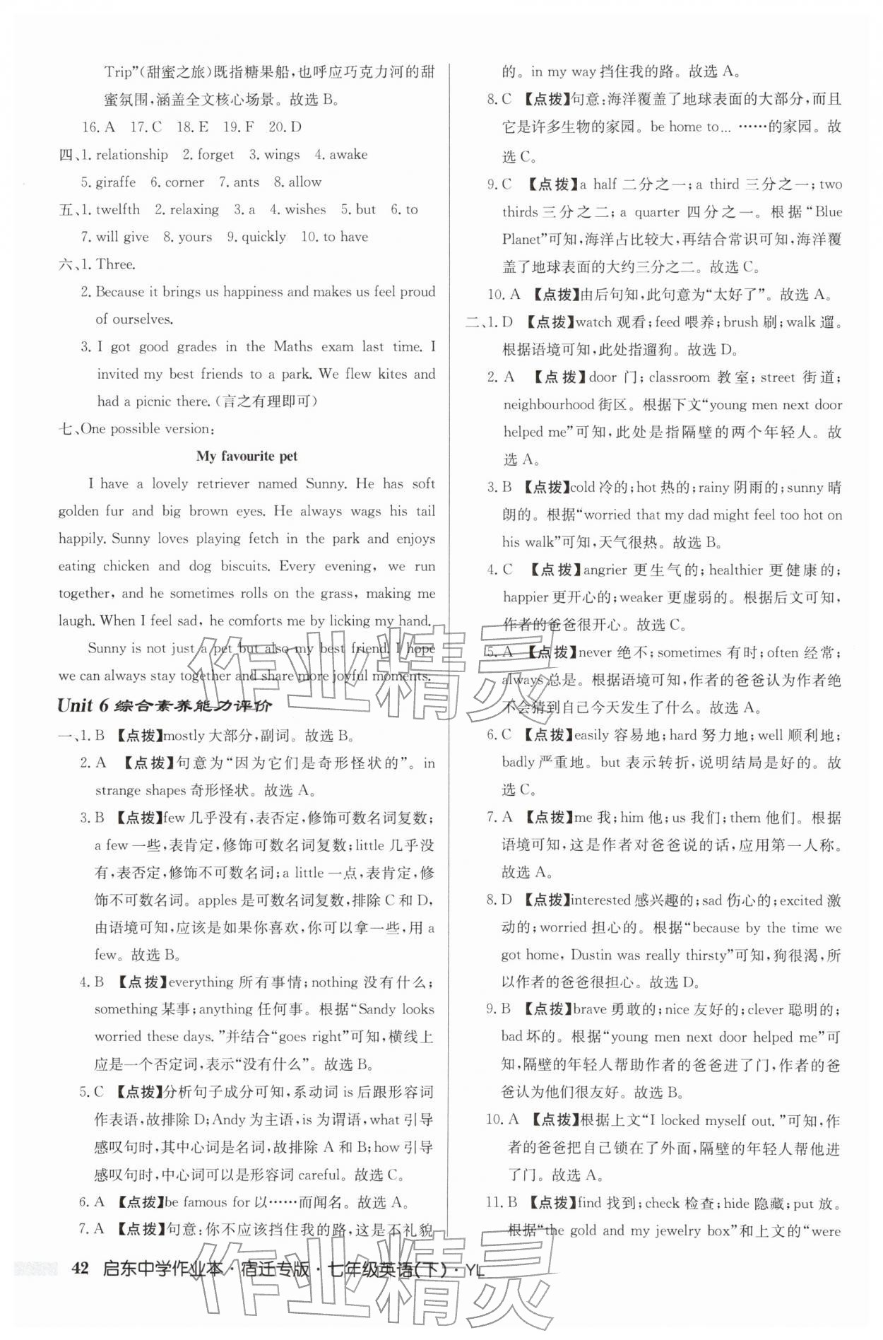 2026年启东中学作业本七年级英语下册译林版宿迁专版第42页