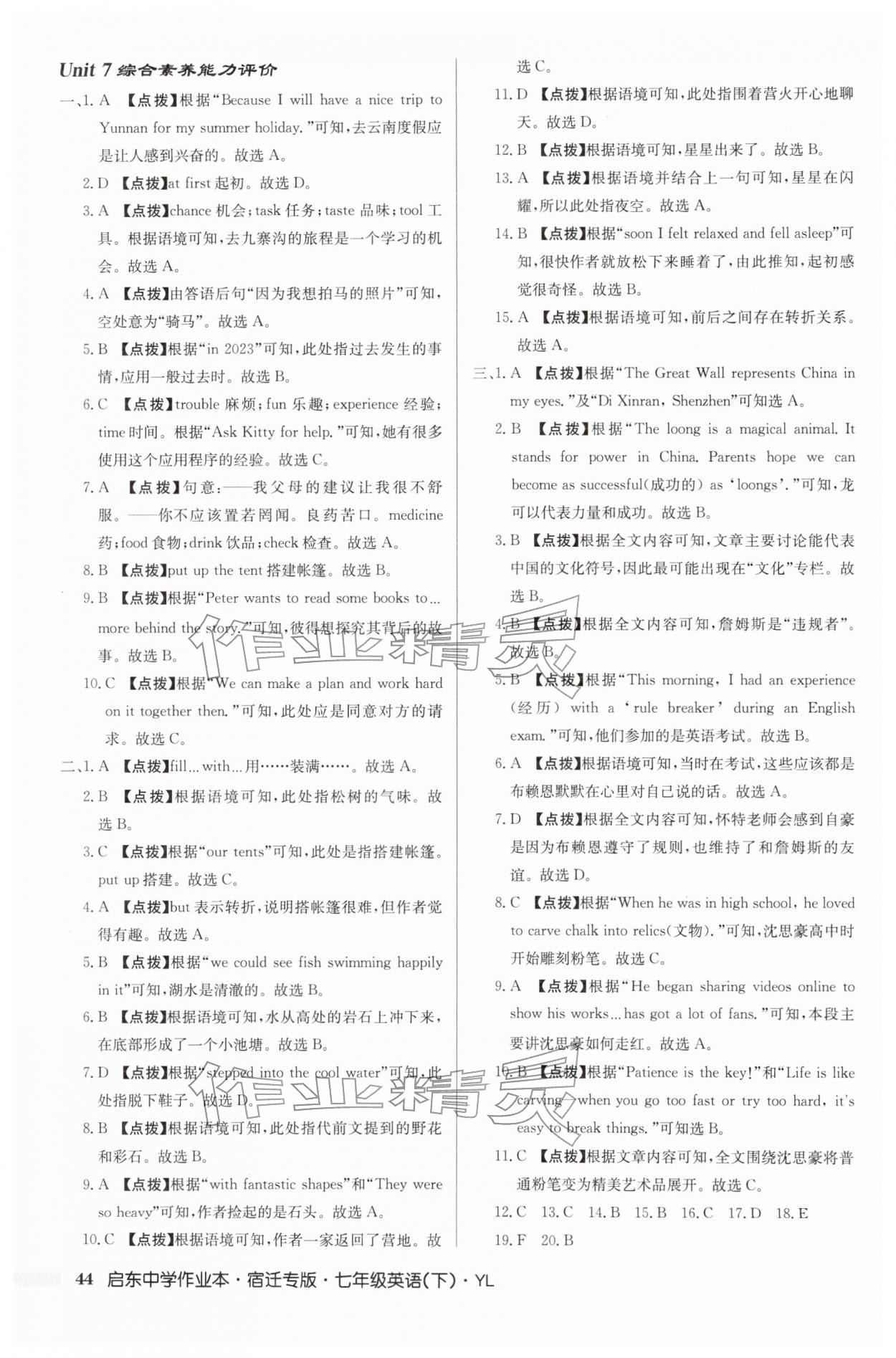 2026年启东中学作业本七年级英语下册译林版宿迁专版第44页