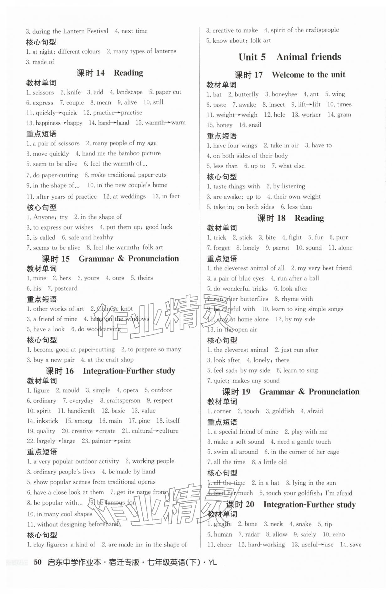 2026年启东中学作业本七年级英语下册译林版宿迁专版第50页
