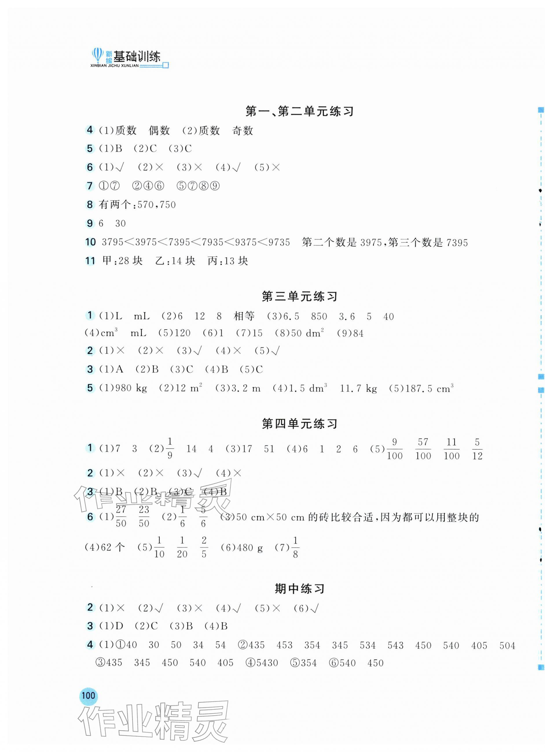 2026年新编基础训练五年级数学下册人教版第11页
