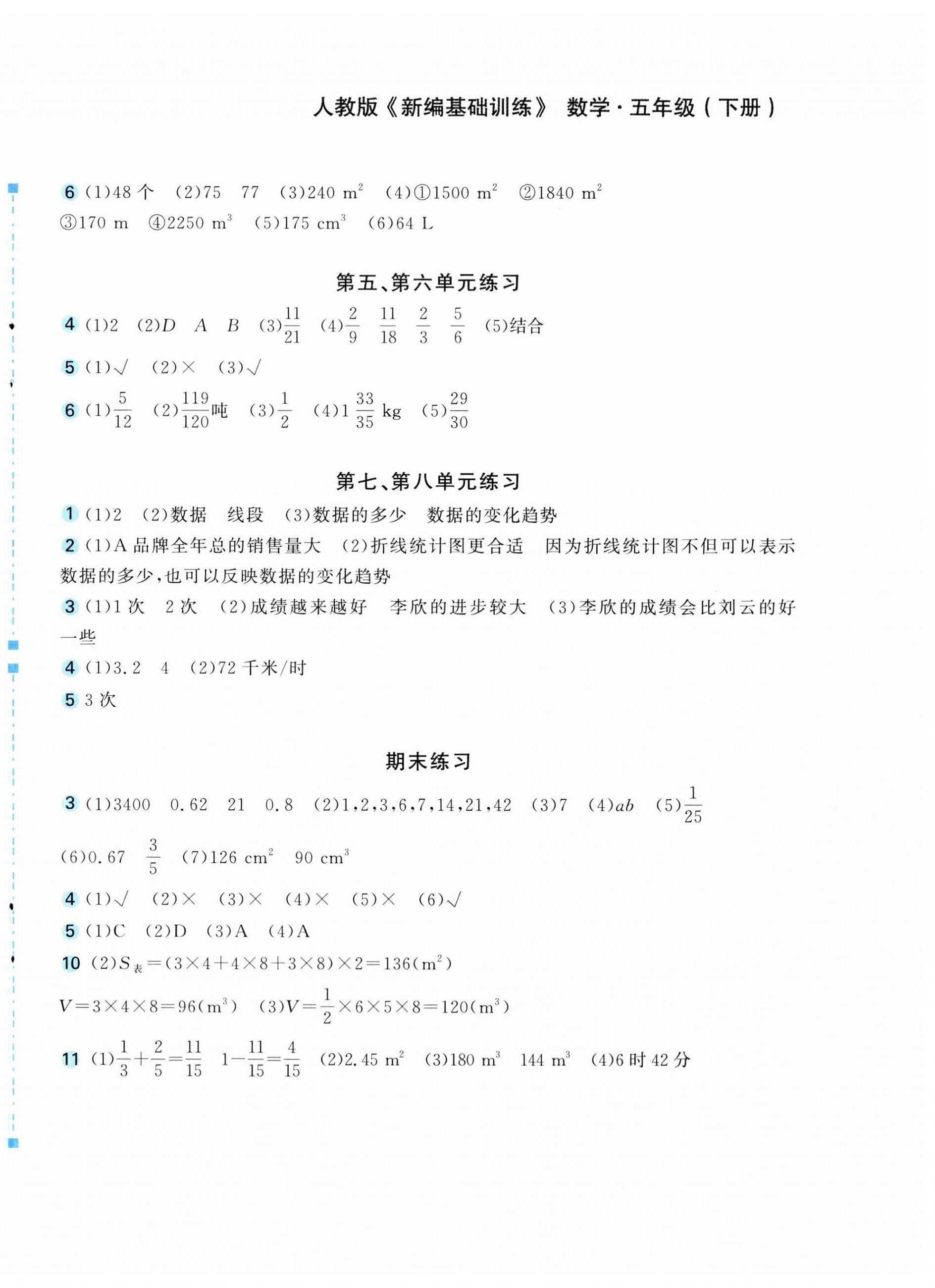 2026年新编基础训练五年级数学下册人教版第12页