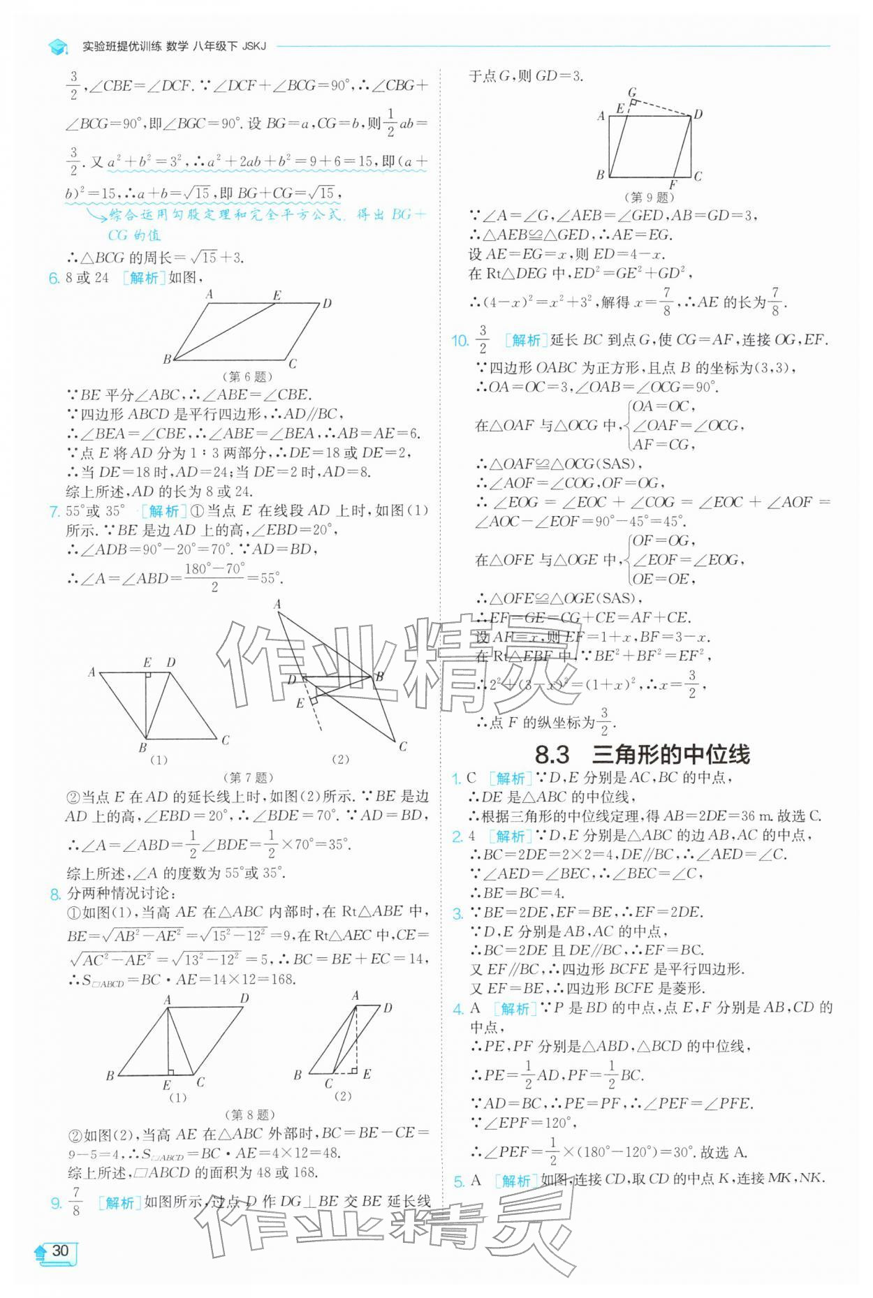 2026年实验班提优训练八年级数学下册苏科版参考答案第30页