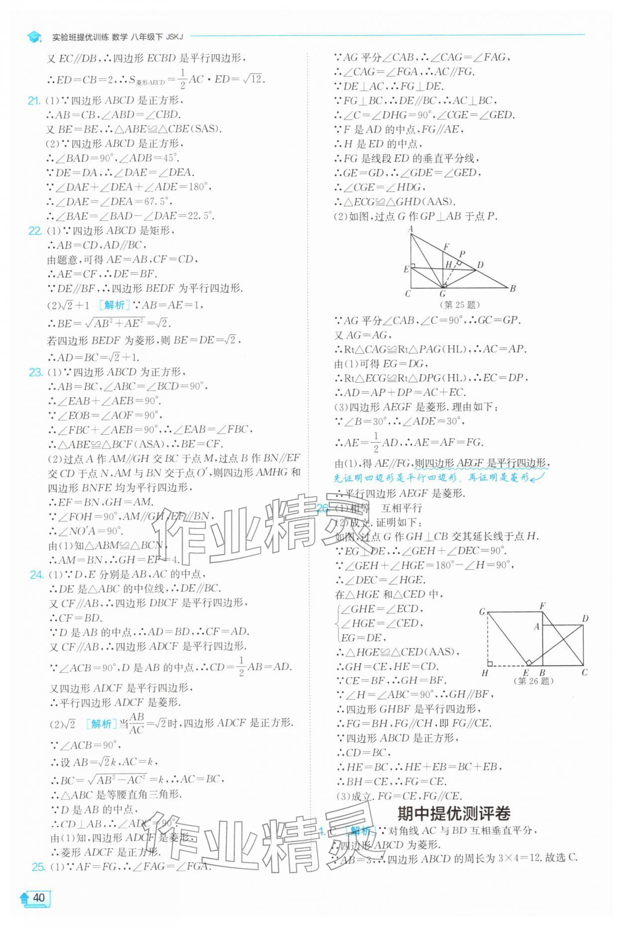 2026年实验班提优训练八年级数学下册苏科版参考答案第40页