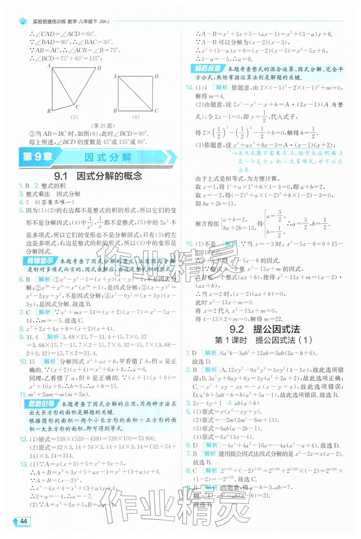 2026年实验班提优训练八年级数学下册苏科版参考答案第44页