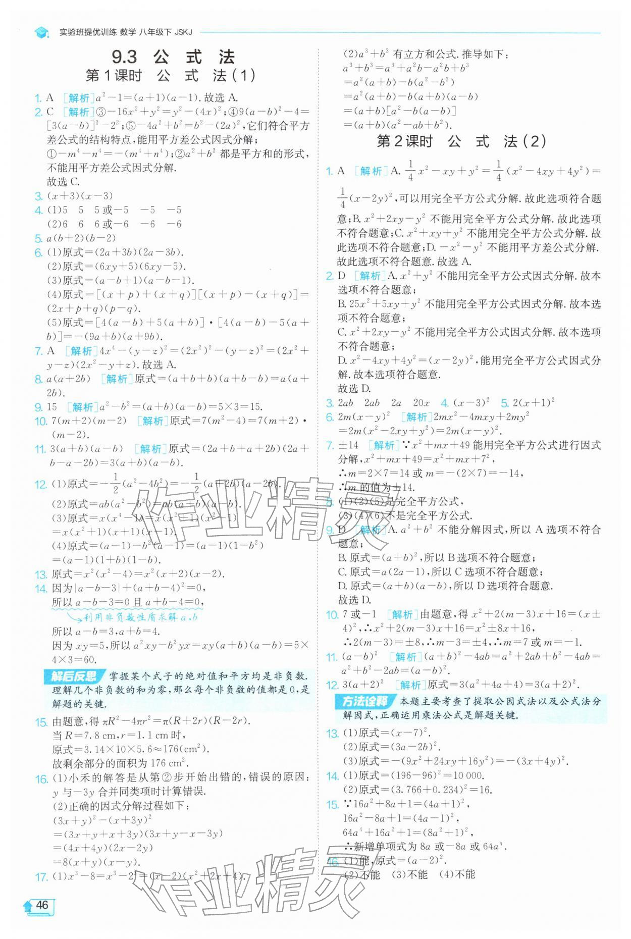 2026年实验班提优训练八年级数学下册苏科版参考答案第46页