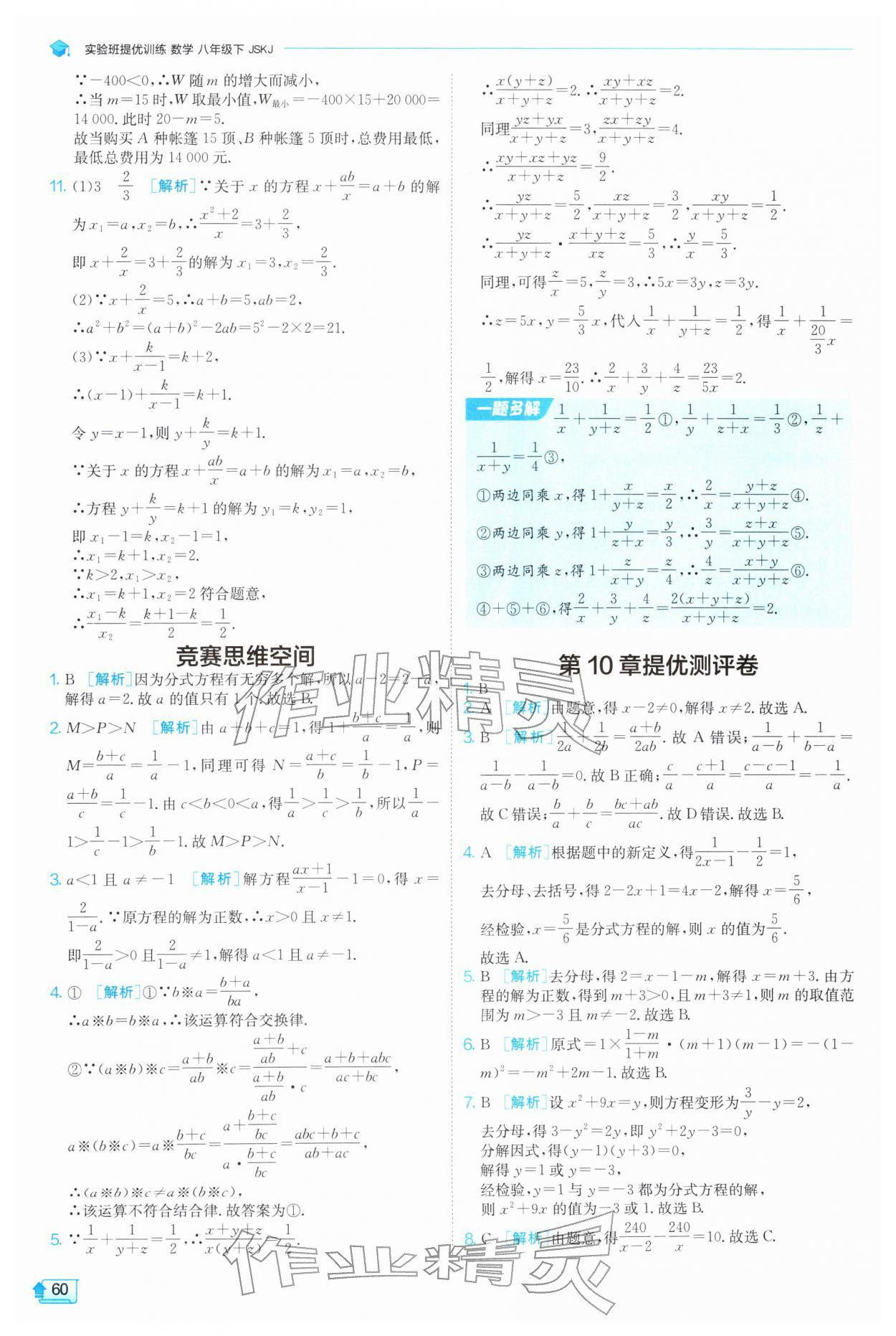 2026年实验班提优训练八年级数学下册苏科版参考答案第60页