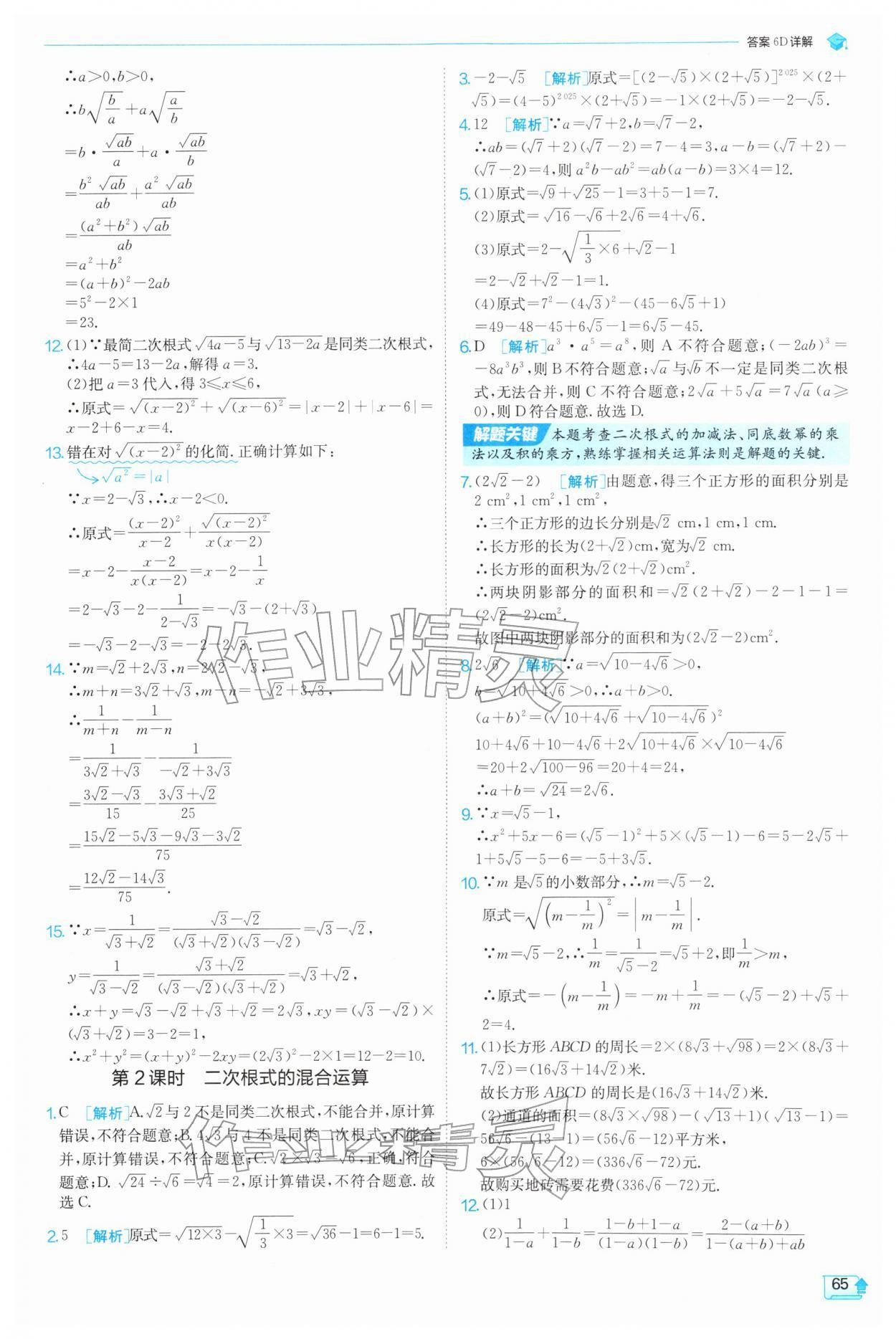 2026年实验班提优训练八年级数学下册苏科版参考答案第65页