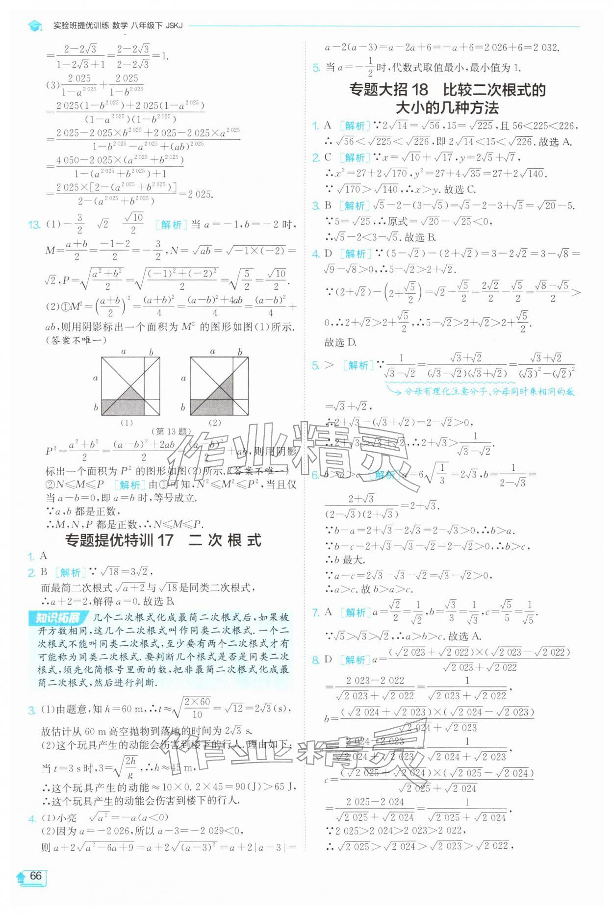 2026年实验班提优训练八年级数学下册苏科版参考答案第66页