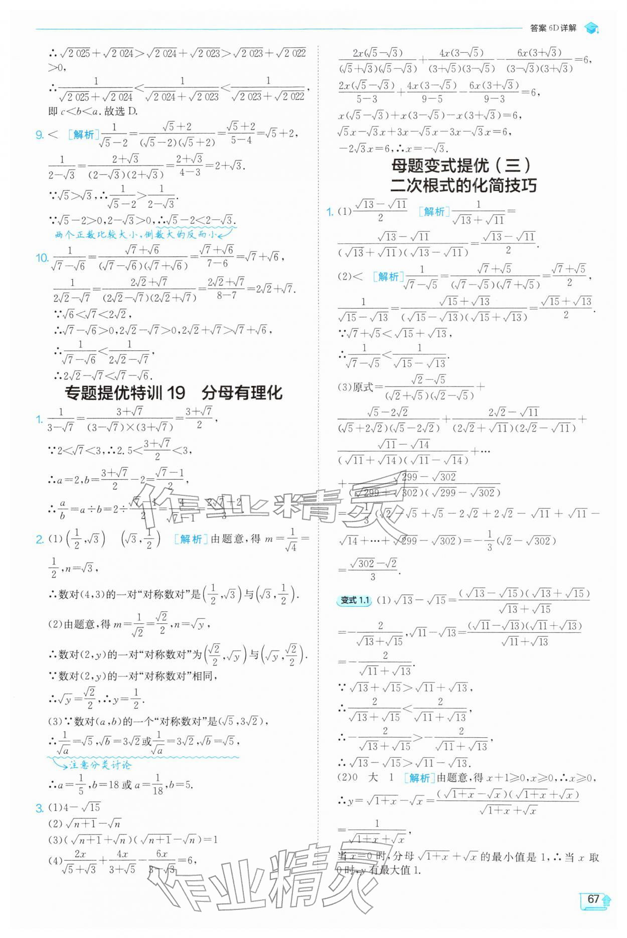 2026年实验班提优训练八年级数学下册苏科版参考答案第67页