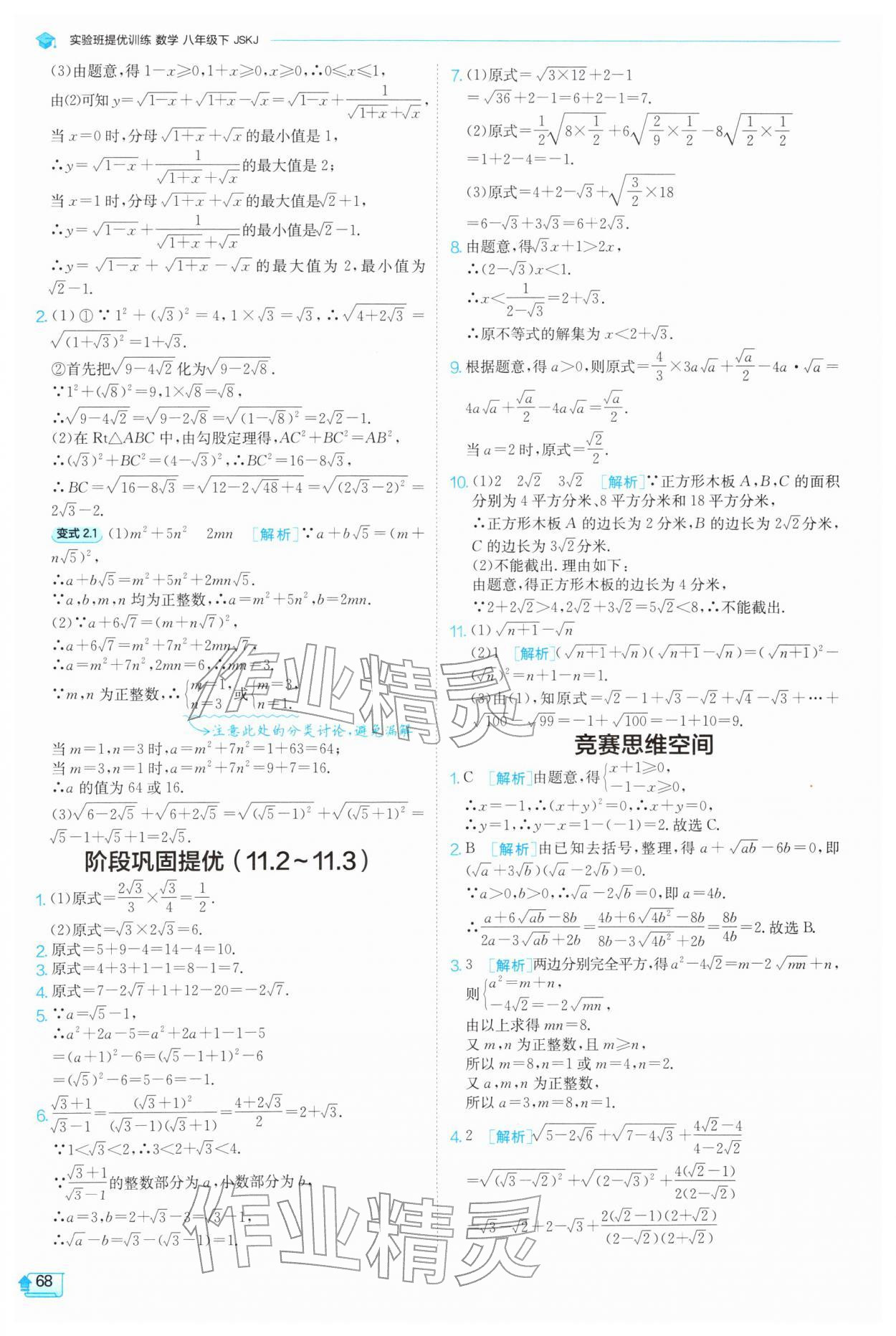 2026年实验班提优训练八年级数学下册苏科版参考答案第68页