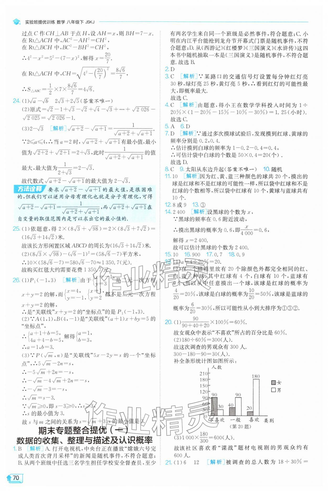 2026年实验班提优训练八年级数学下册苏科版参考答案第70页