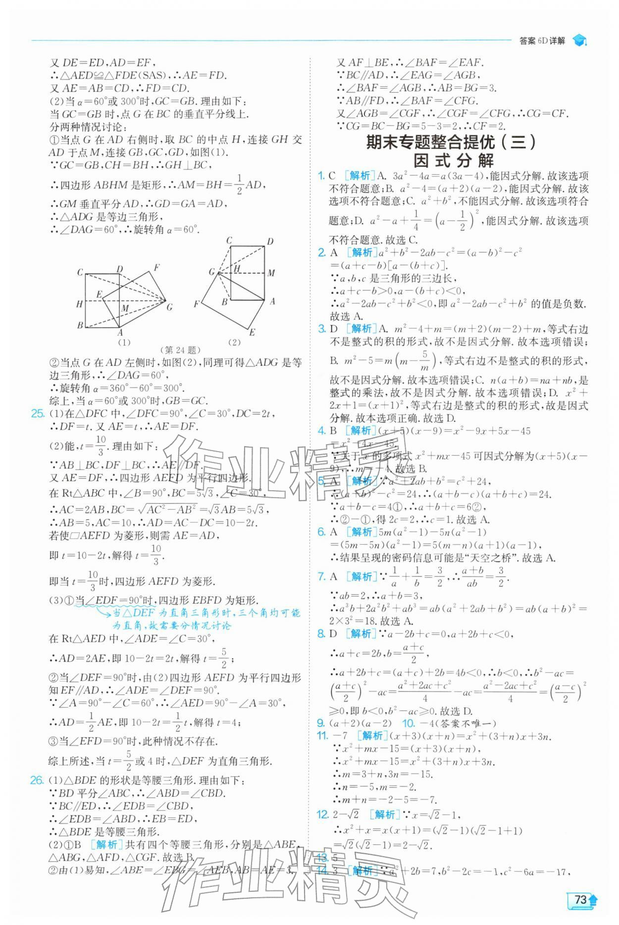 2026年实验班提优训练八年级数学下册苏科版参考答案第73页