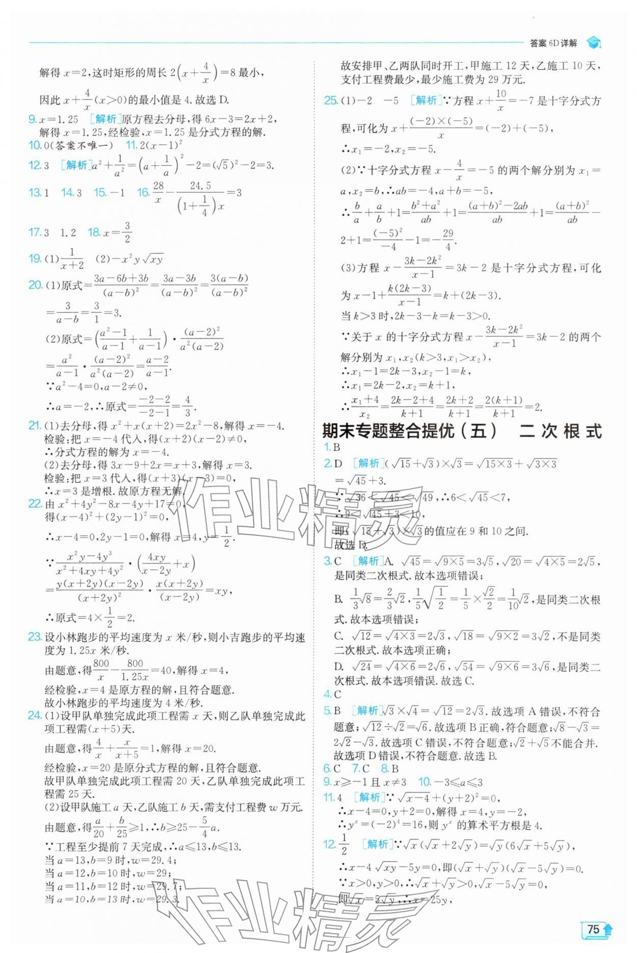 2026年实验班提优训练八年级数学下册苏科版参考答案第75页