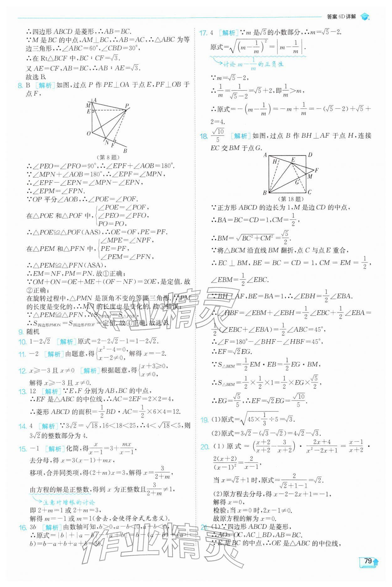 2026年实验班提优训练八年级数学下册苏科版参考答案第79页