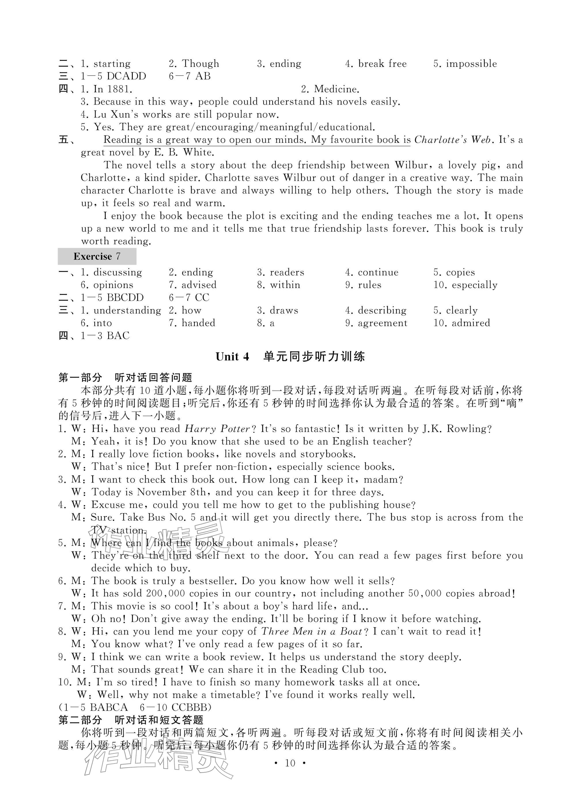 2026年综合素质随堂反馈八年级英语下册译林版苏州专版参考答案第10页