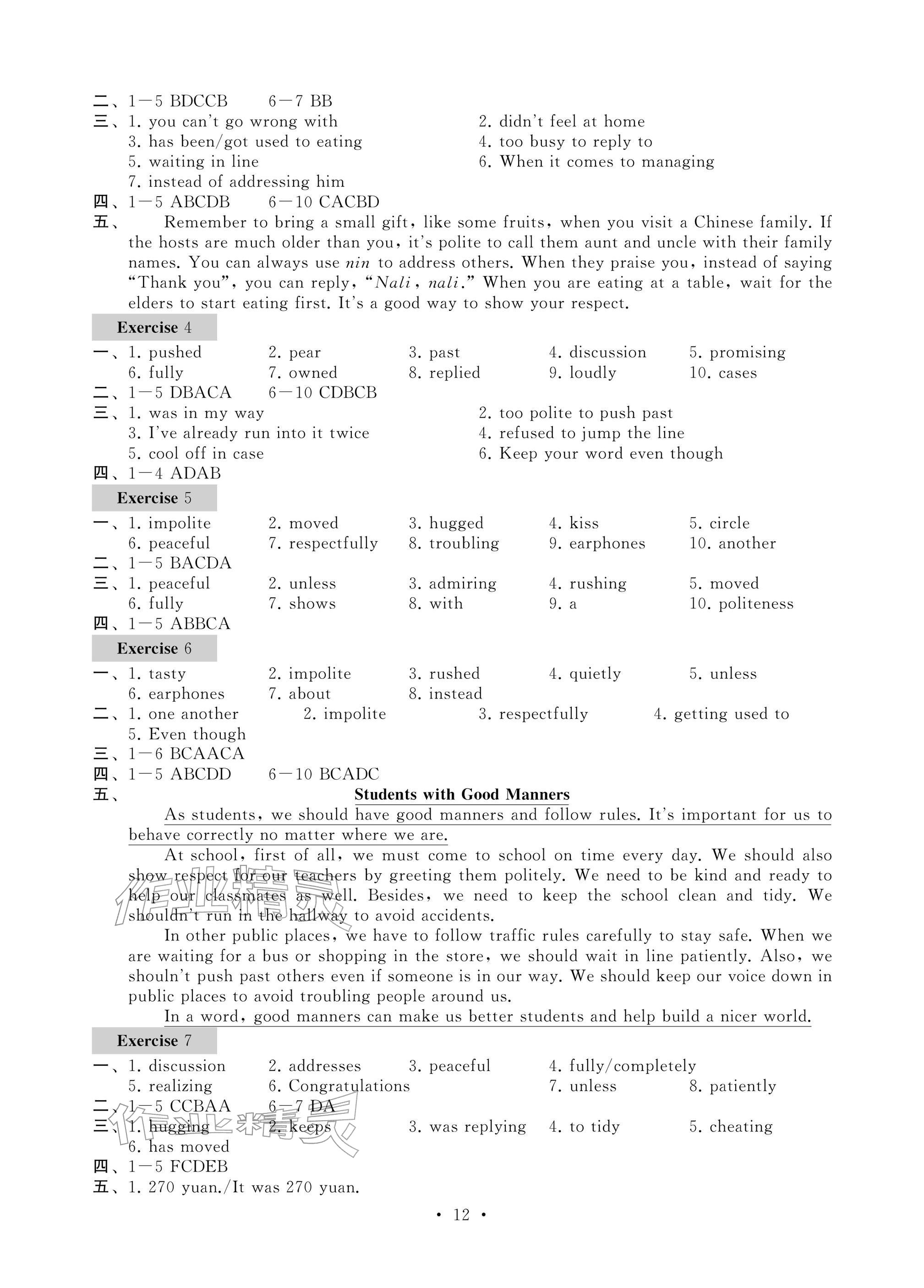 2026年综合素质随堂反馈八年级英语下册译林版苏州专版参考答案第12页