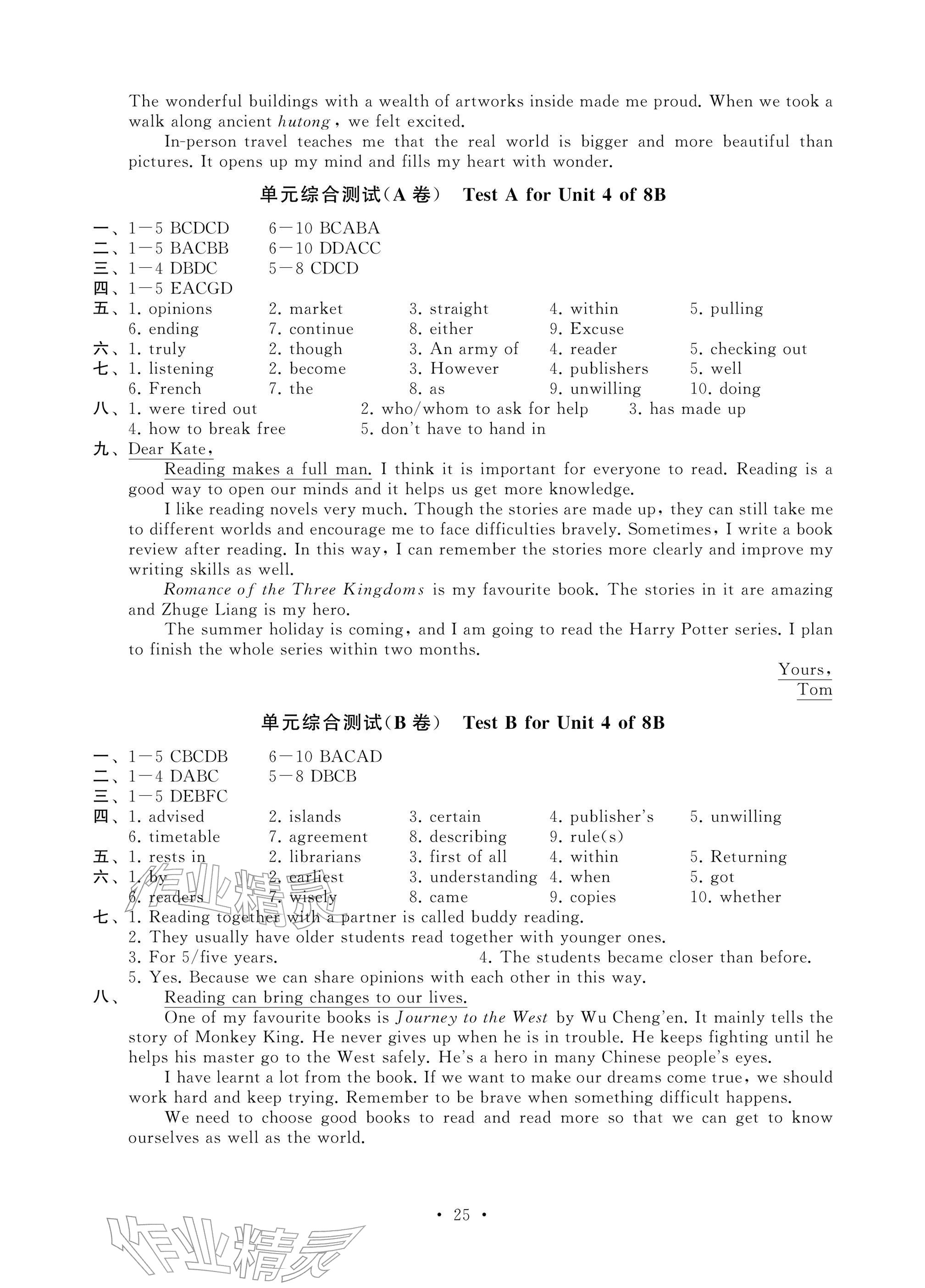 2026年综合素质随堂反馈八年级英语下册译林版苏州专版参考答案第25页