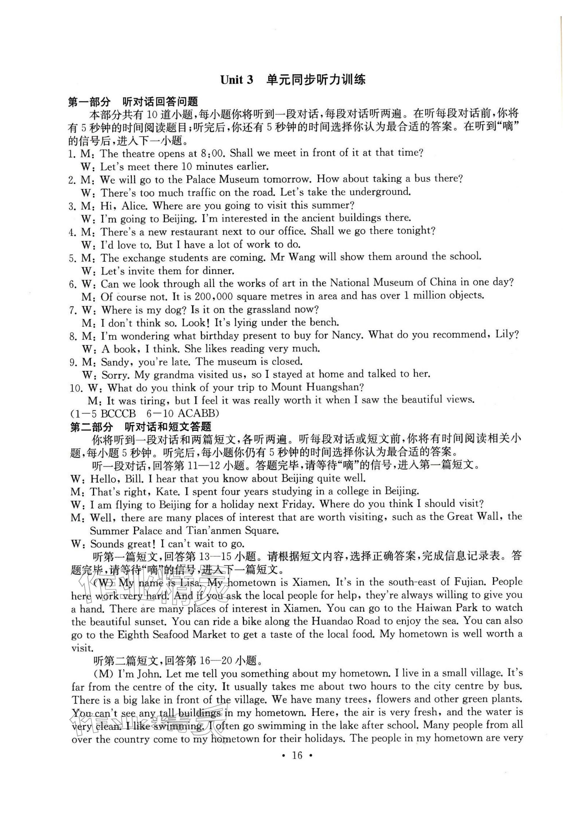 2026年综合素质随堂反馈七年级英语下册译林版无锡专版参考答案第16页