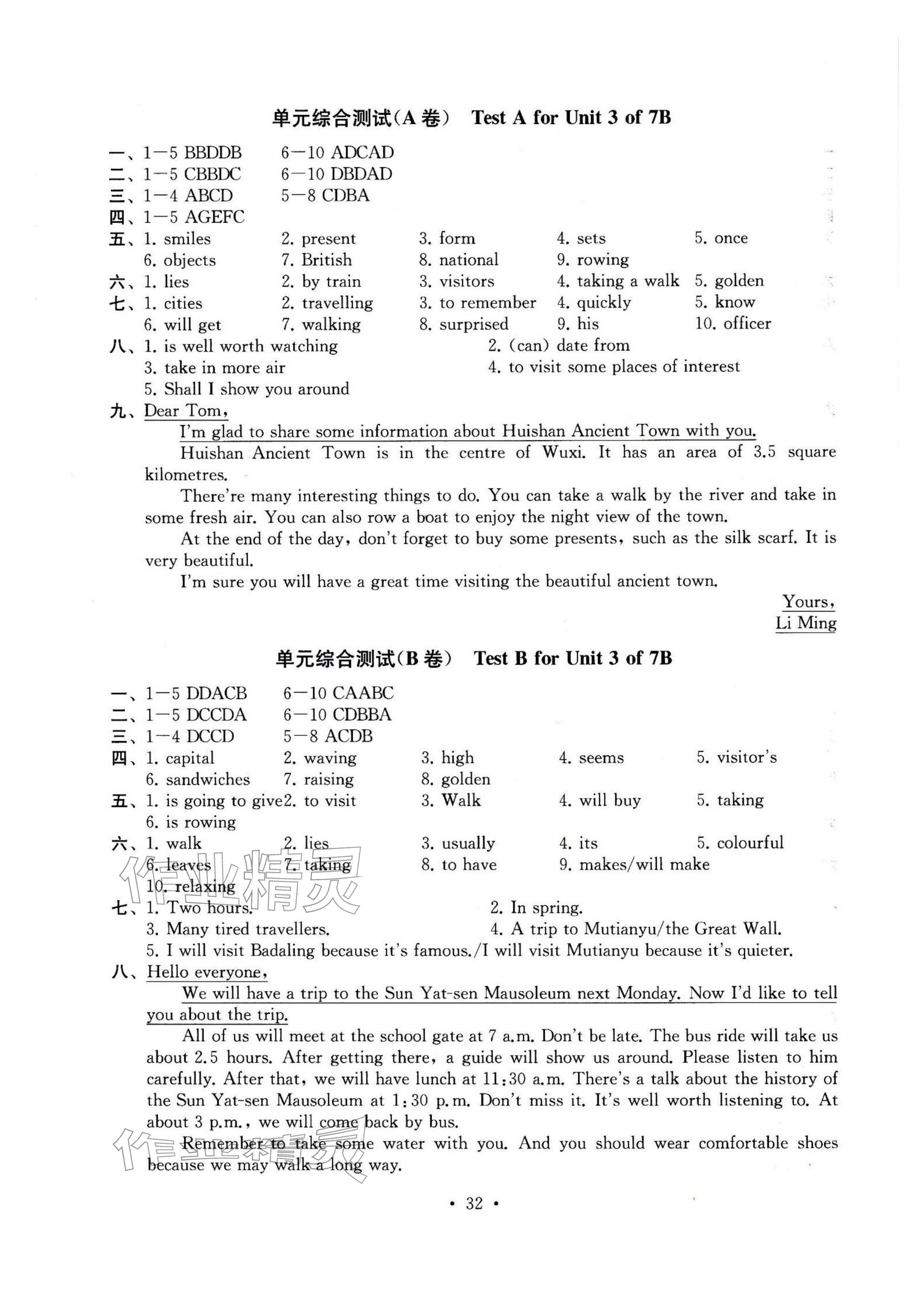 2026年综合素质随堂反馈七年级英语下册译林版无锡专版参考答案第32页