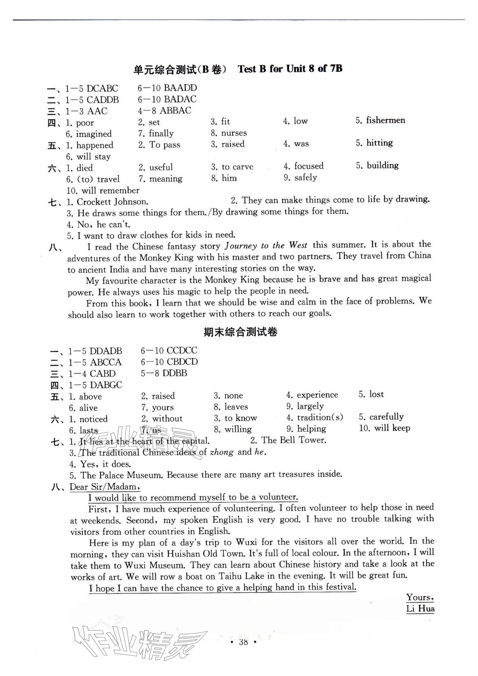 2026年综合素质随堂反馈七年级英语下册译林版无锡专版参考答案第38页