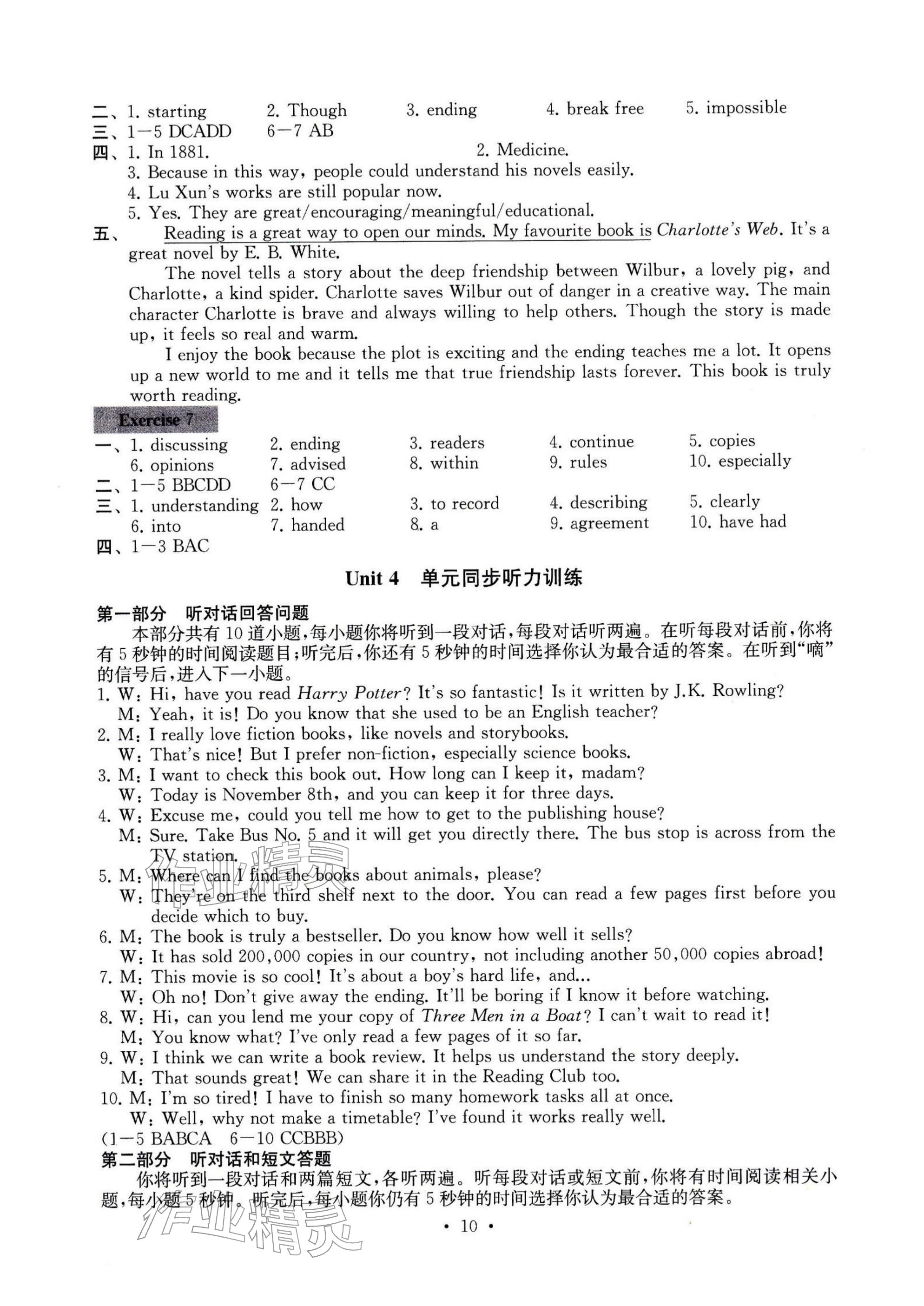 2026年综合素质随堂反馈八年级英语下册译林版无锡专版参考答案第10页
