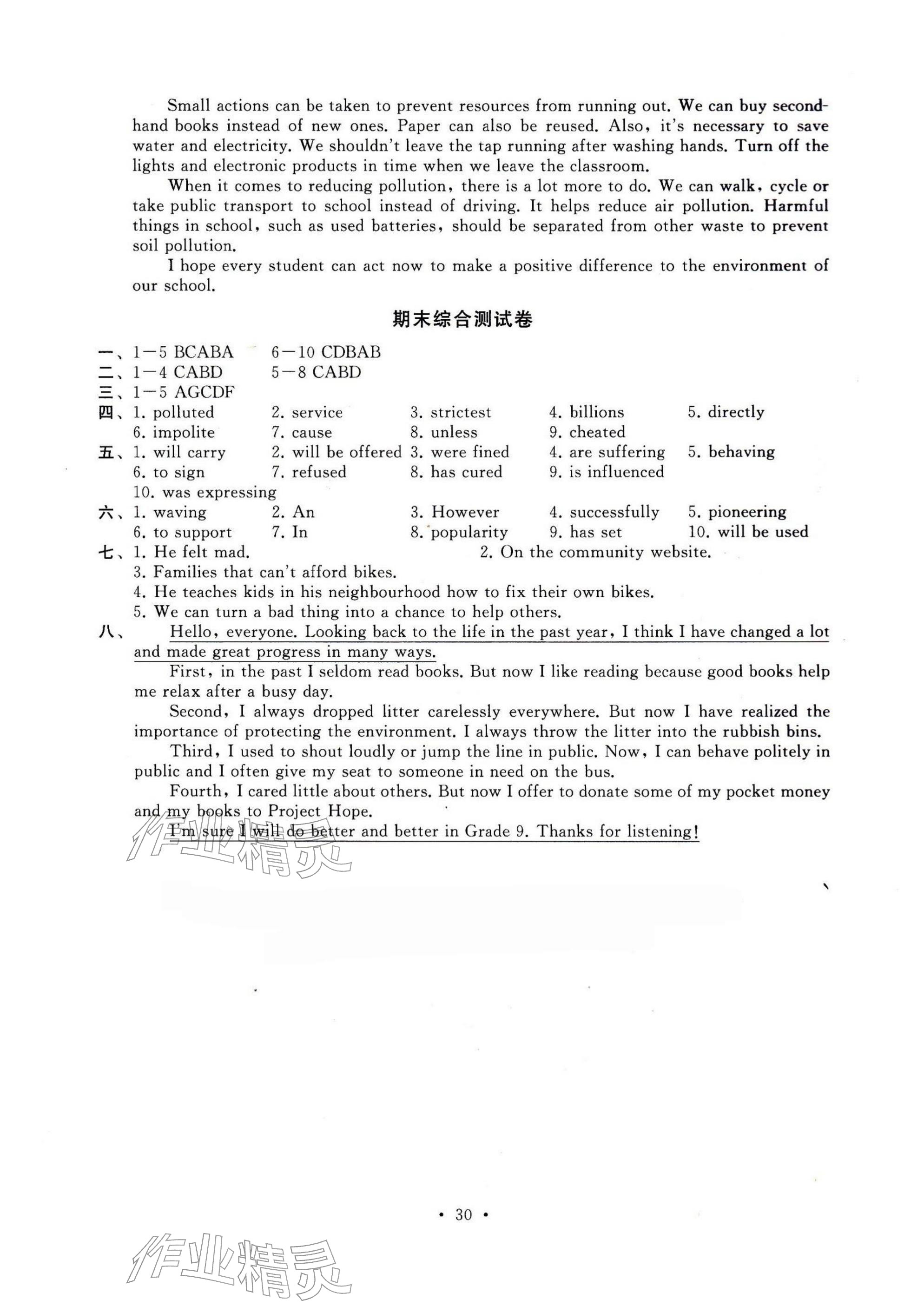 2026年综合素质随堂反馈八年级英语下册译林版无锡专版参考答案第31页