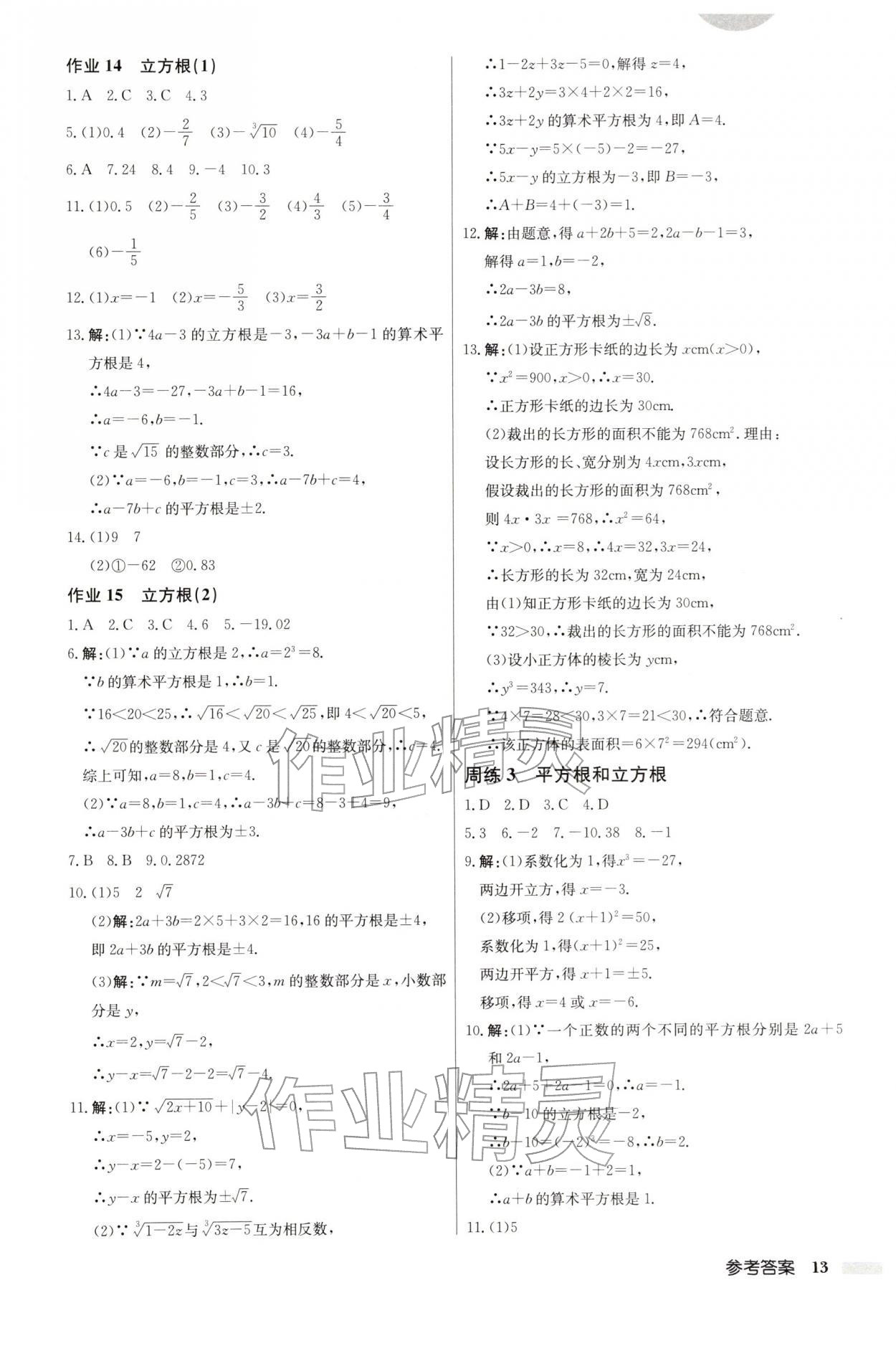 2026年启东中学作业本七年级数学下册人教版第13页