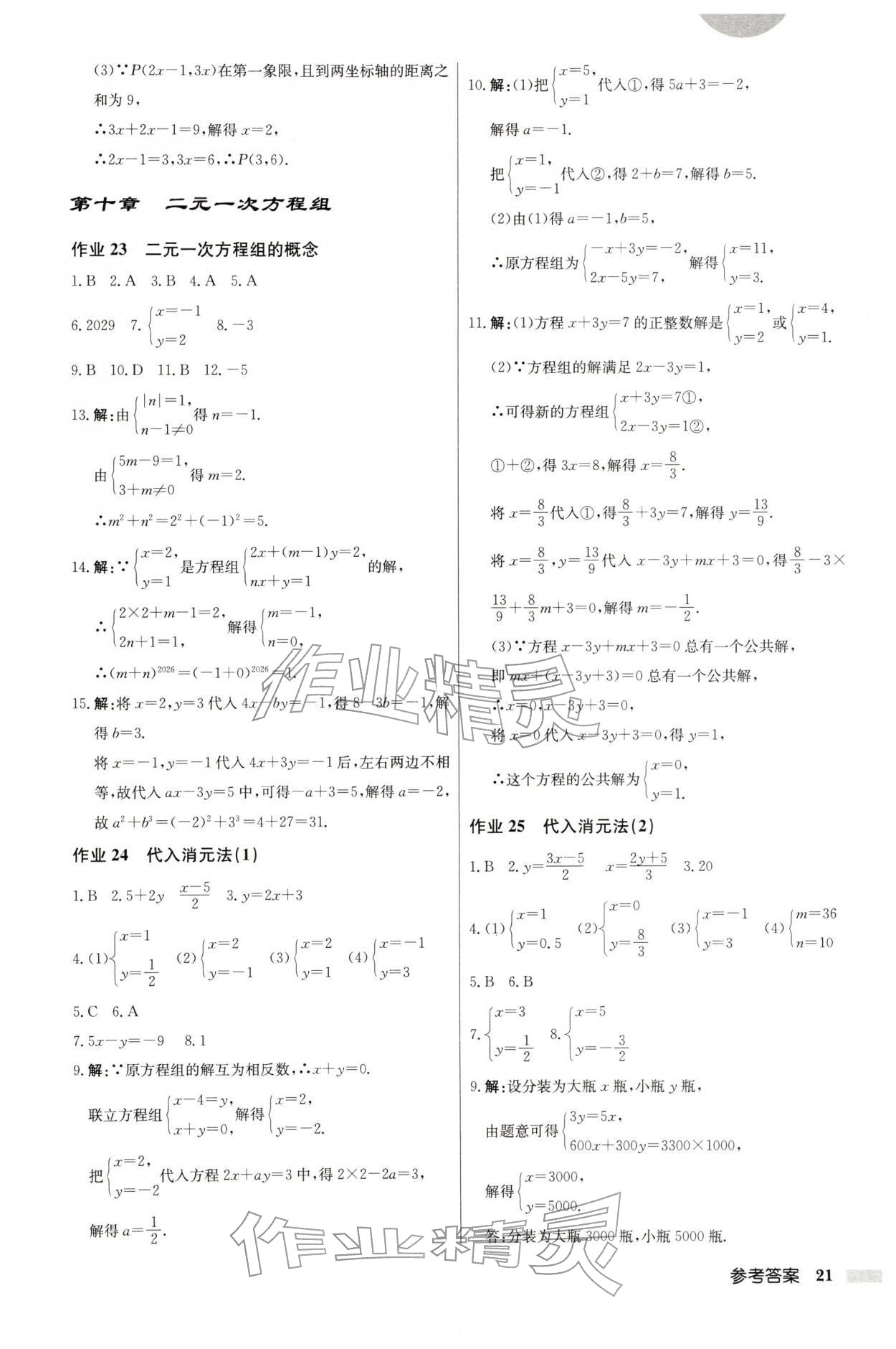 2026年启东中学作业本七年级数学下册人教版第21页