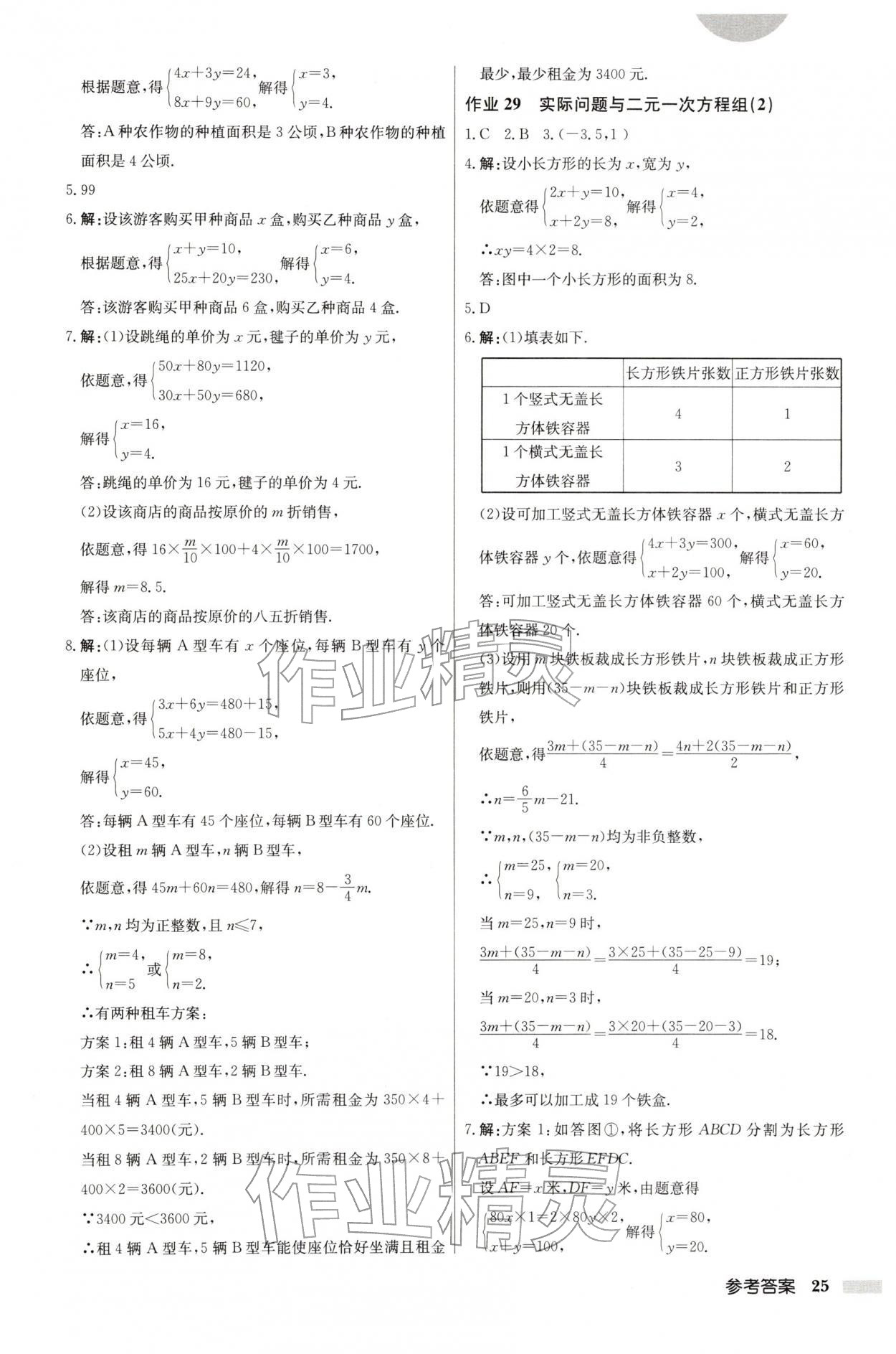 2026年启东中学作业本七年级数学下册人教版第25页
