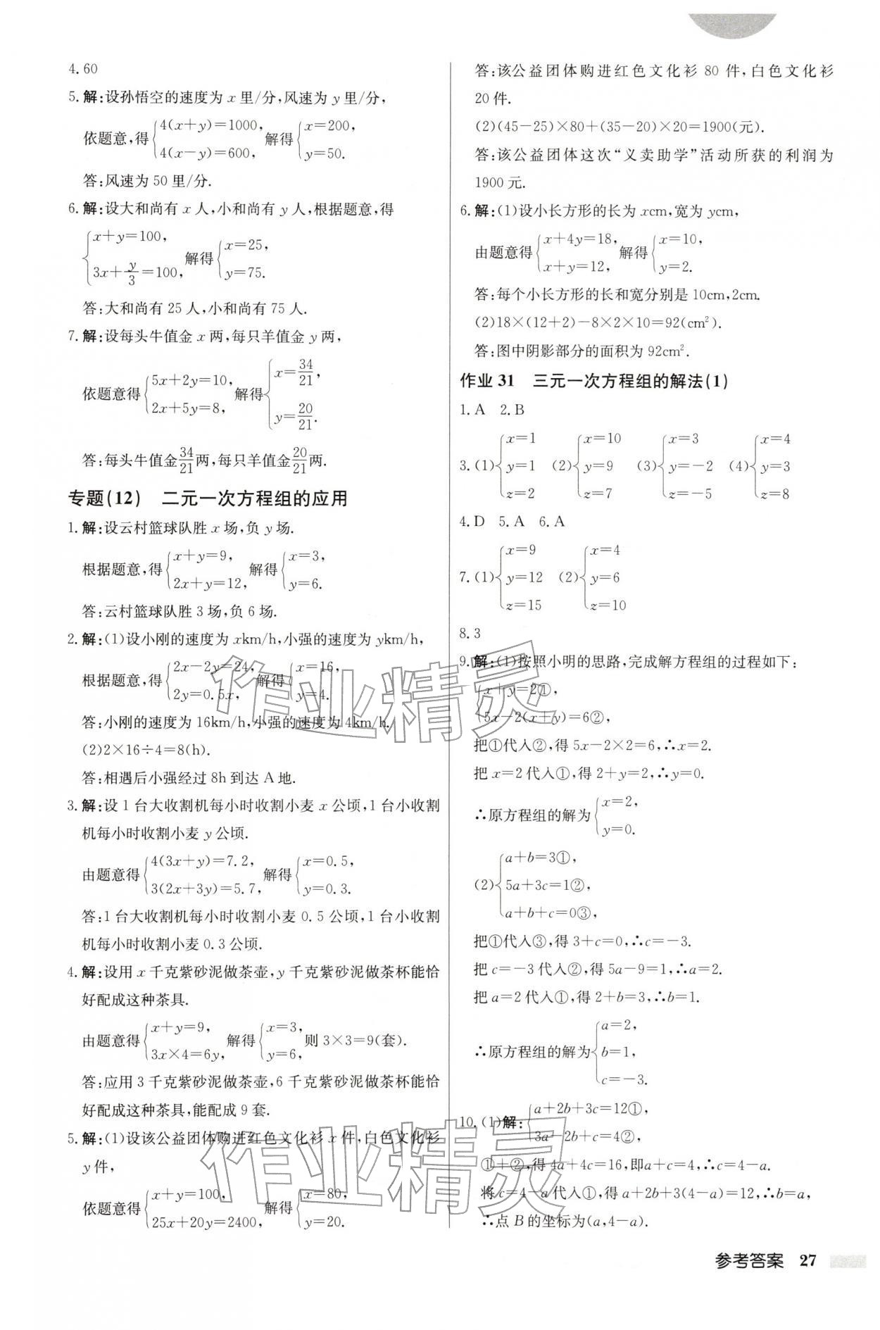 2026年启东中学作业本七年级数学下册人教版第27页