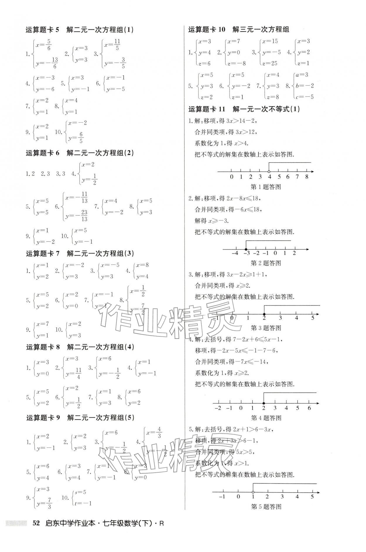 2026年启东中学作业本七年级数学下册人教版第52页